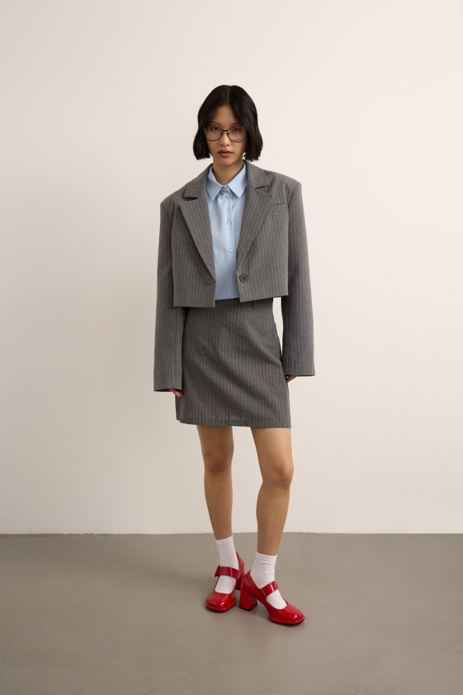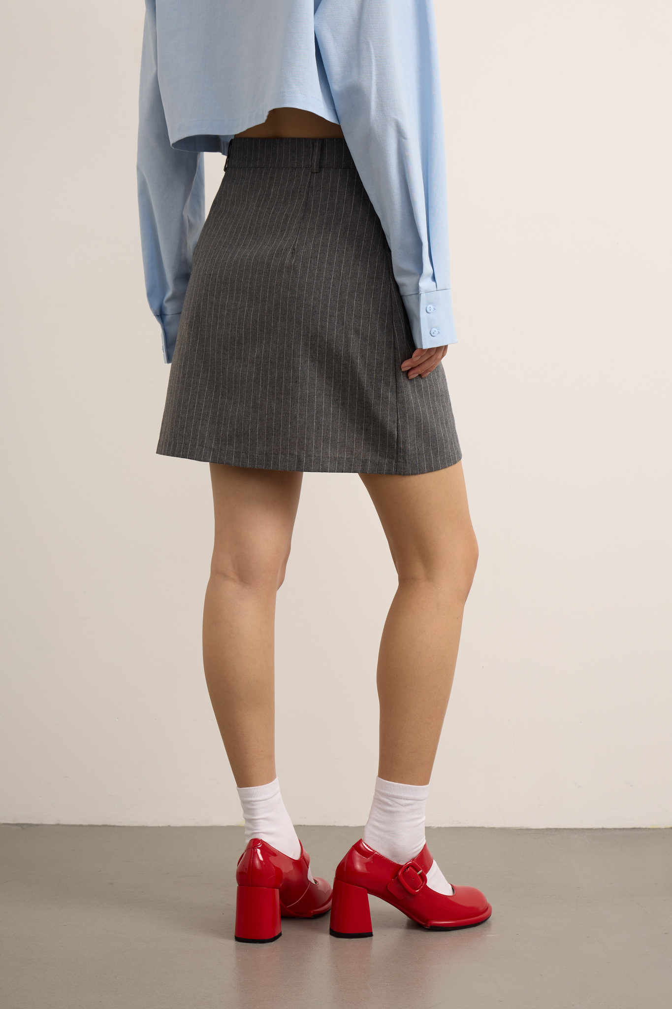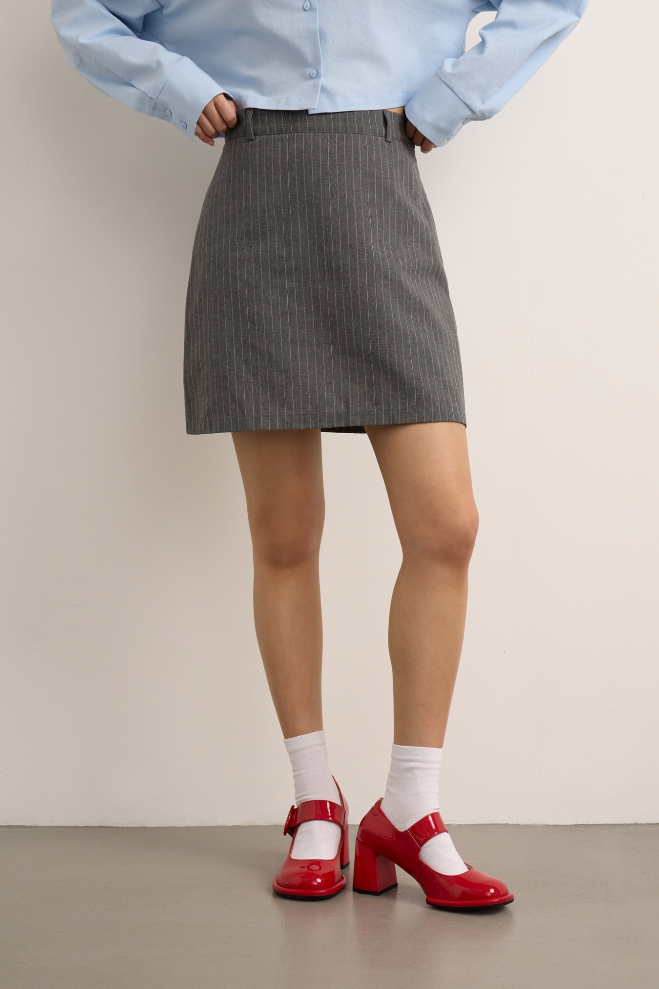 Мини-юбка прямого кроя в полоску — стильный и яркий элемент гардероба. Серый цвет делает модель универсальной и подходящей для различных образов.