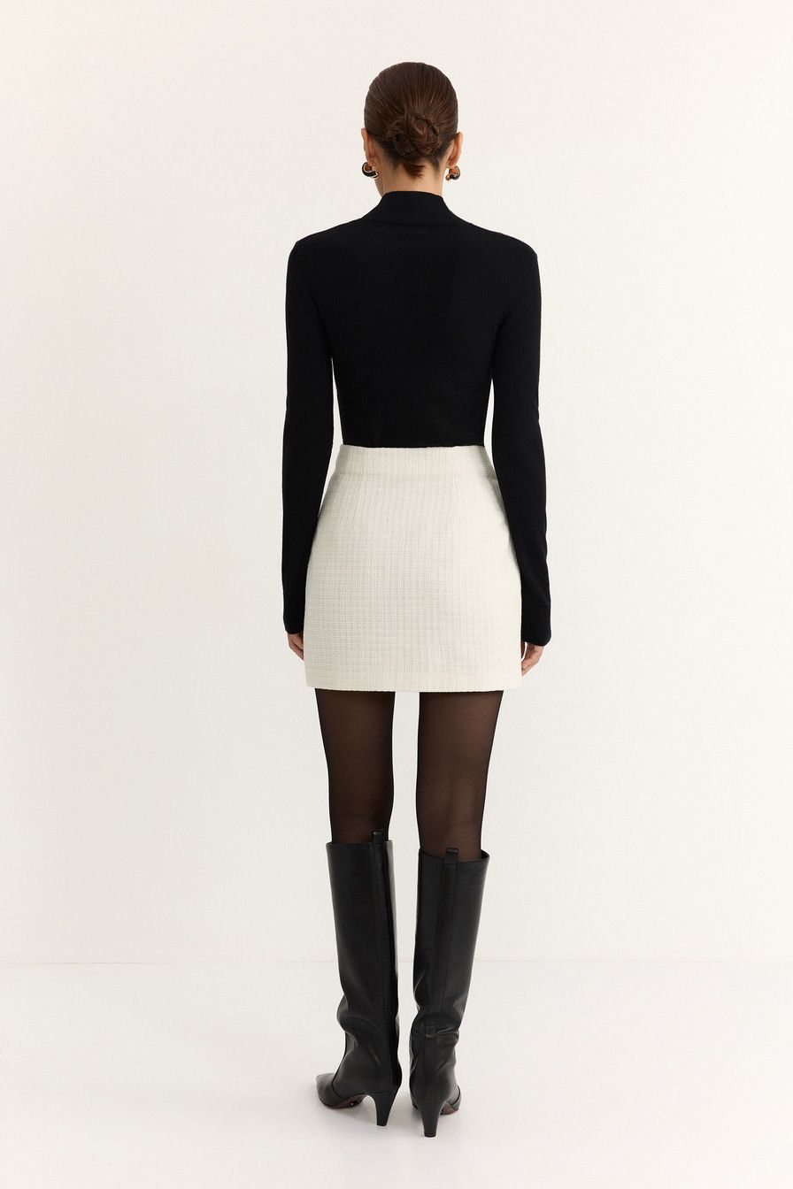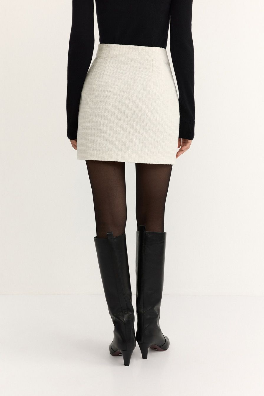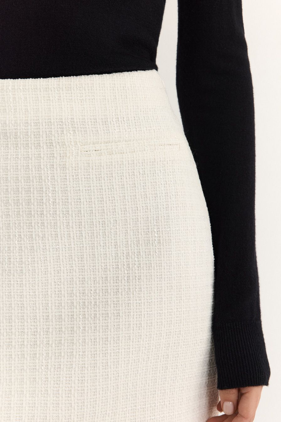 Молочная твидовая юбка из смесовой вискозы – модель прямого кроя.