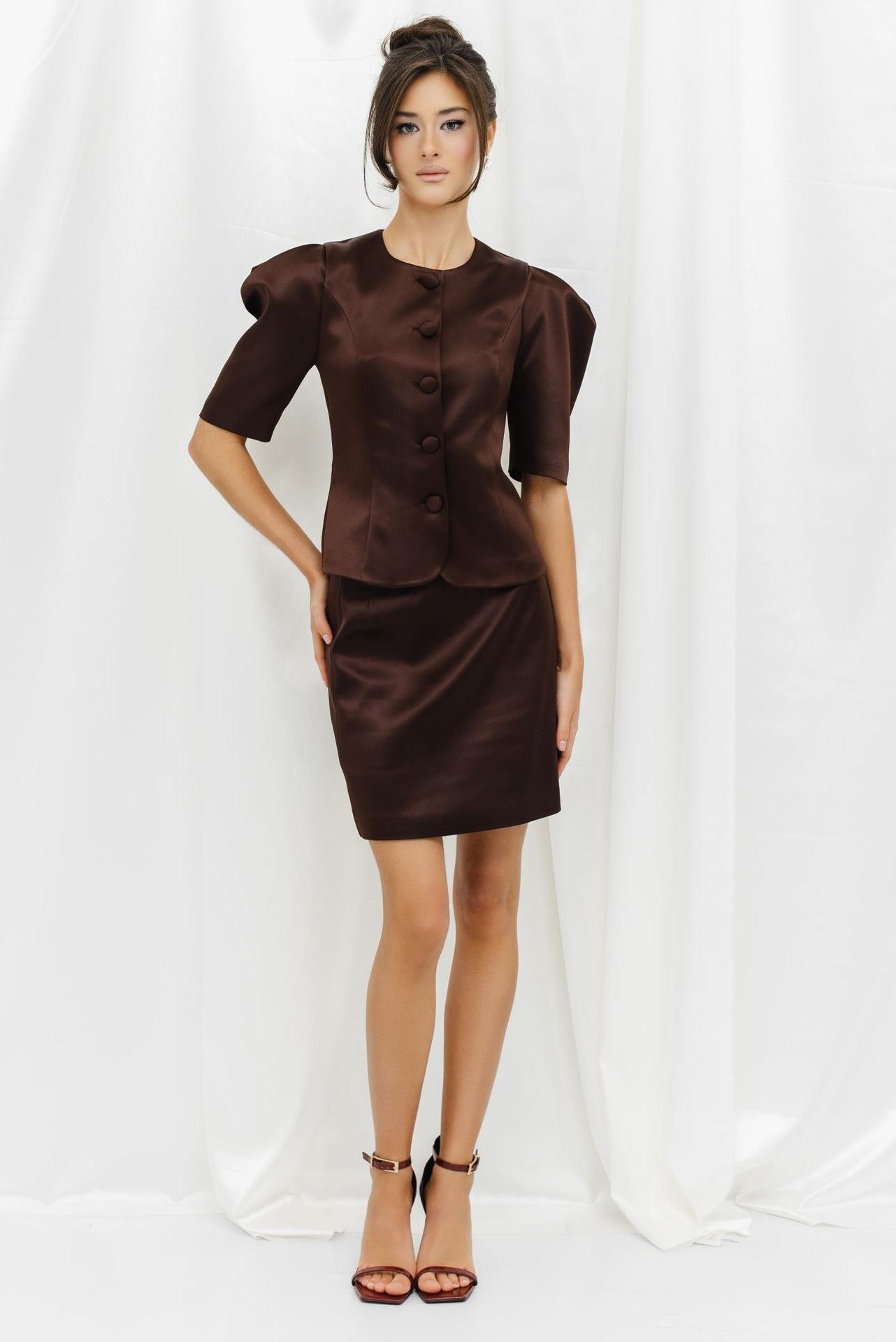 Юбка из плотного атласа в шоколадном оттенке.