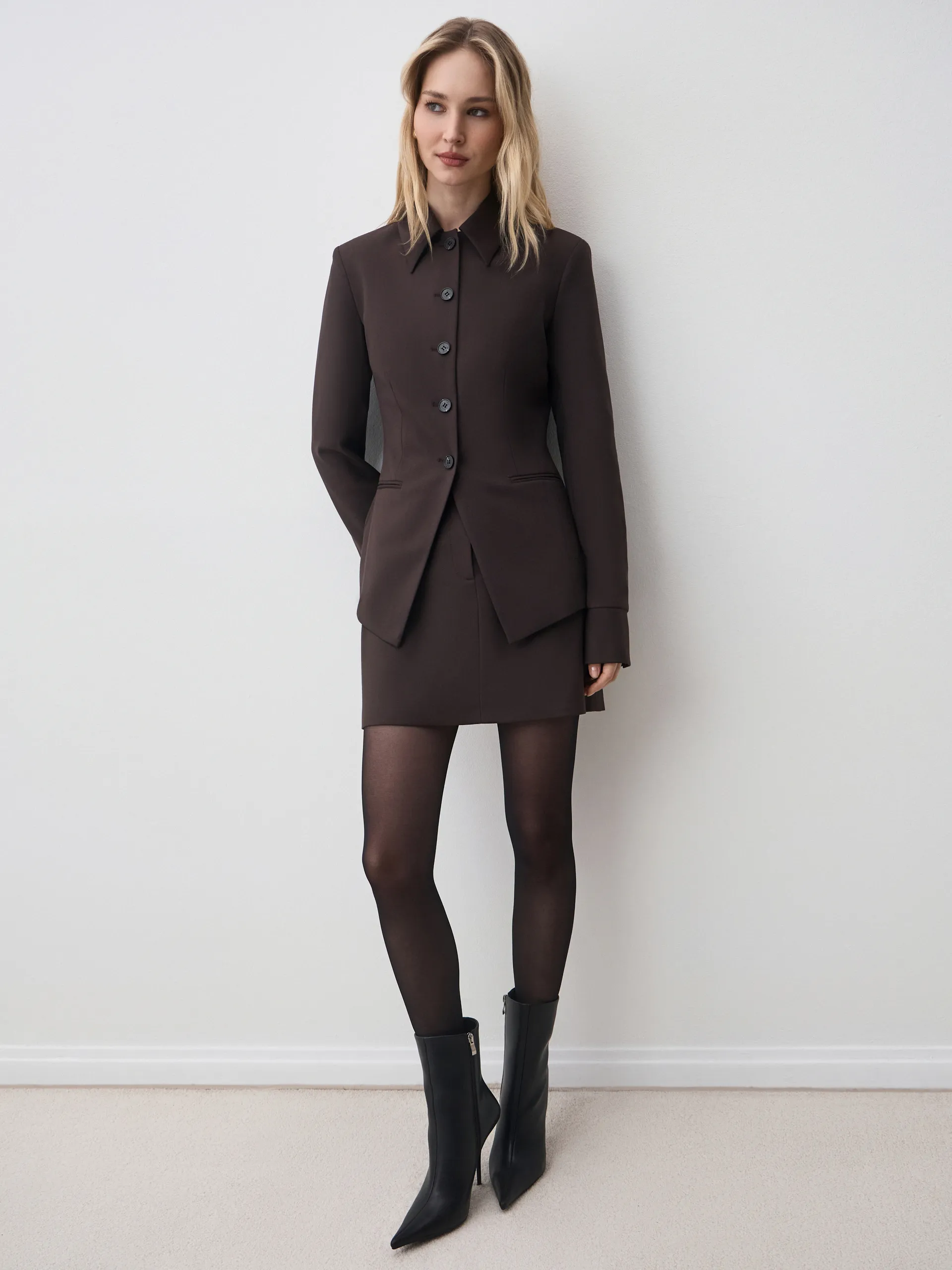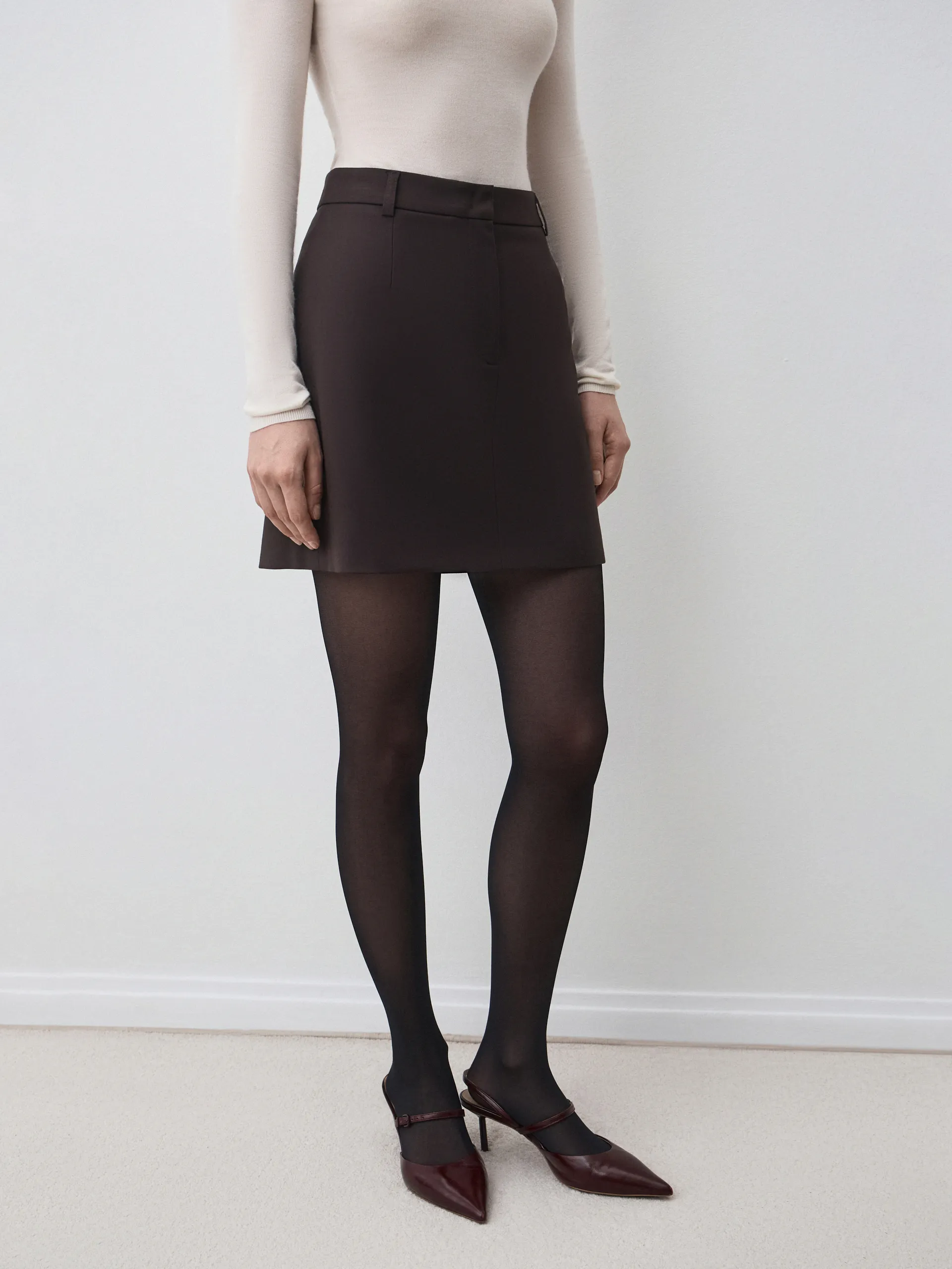 Юбка Elara — классическая мини-модель А-силуэта из костюмной ткани с вискозой. Благодаря трапециевидной форме она подчёркивает талию и визуально удлиняет ноги, формируя аккуратный и сбалансированный силуэт. Оттенок тёмного шоколада выглядит благородно и универсально, легко сочетается с рубашками, корсетными топами, жакетами и трикотажем. Лаконичный крой делает юбку удобной, практичной и подходящей для разнообразных образов.