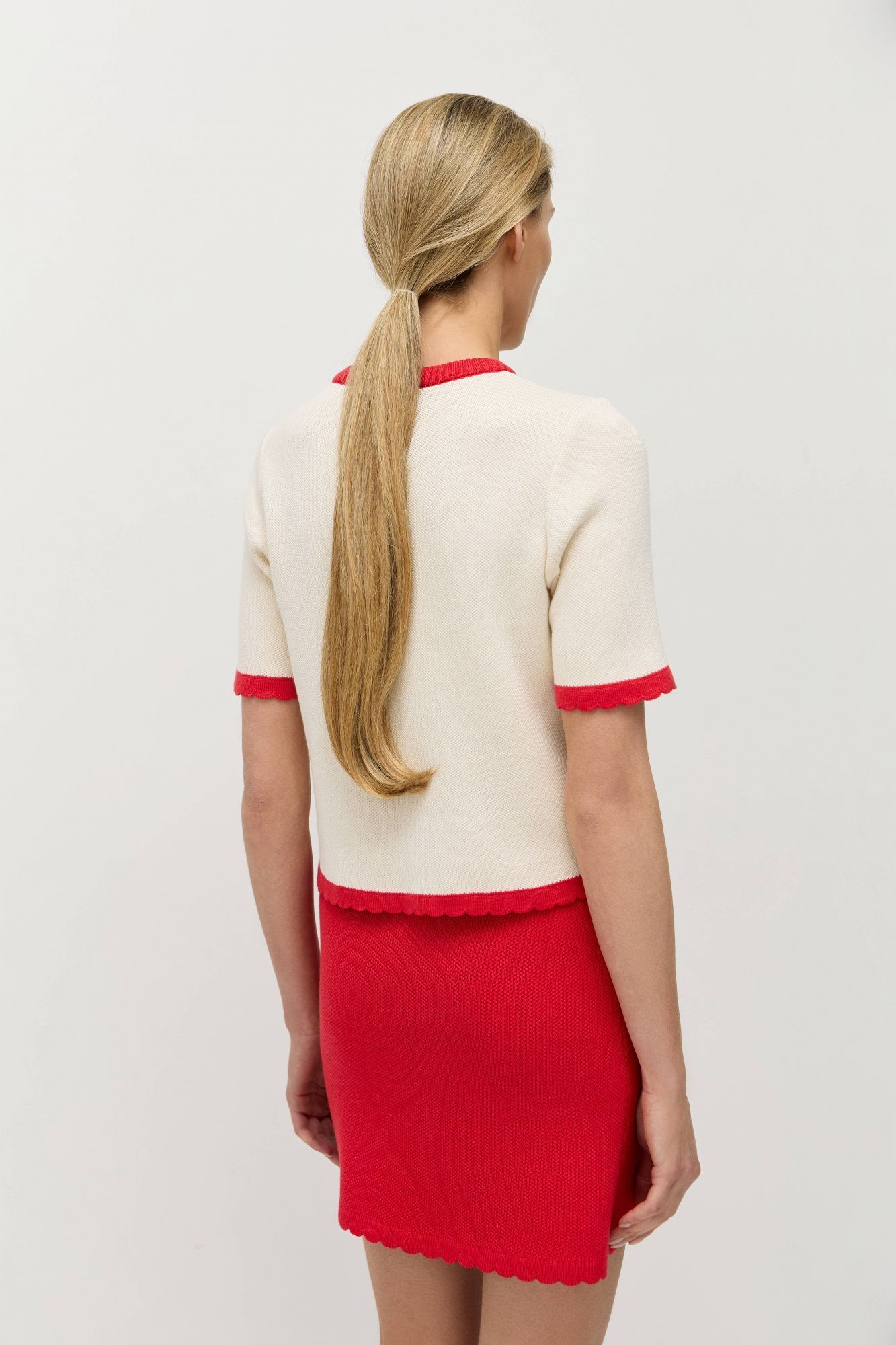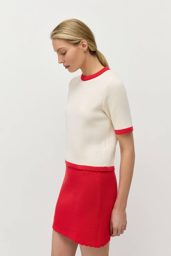 Юбка-мини связана из натурального хлопка с легкой примесью акрила для стабильности и долговечности.