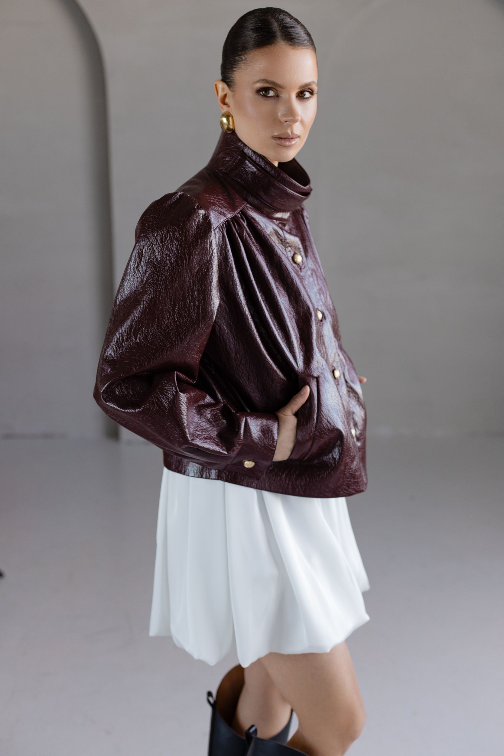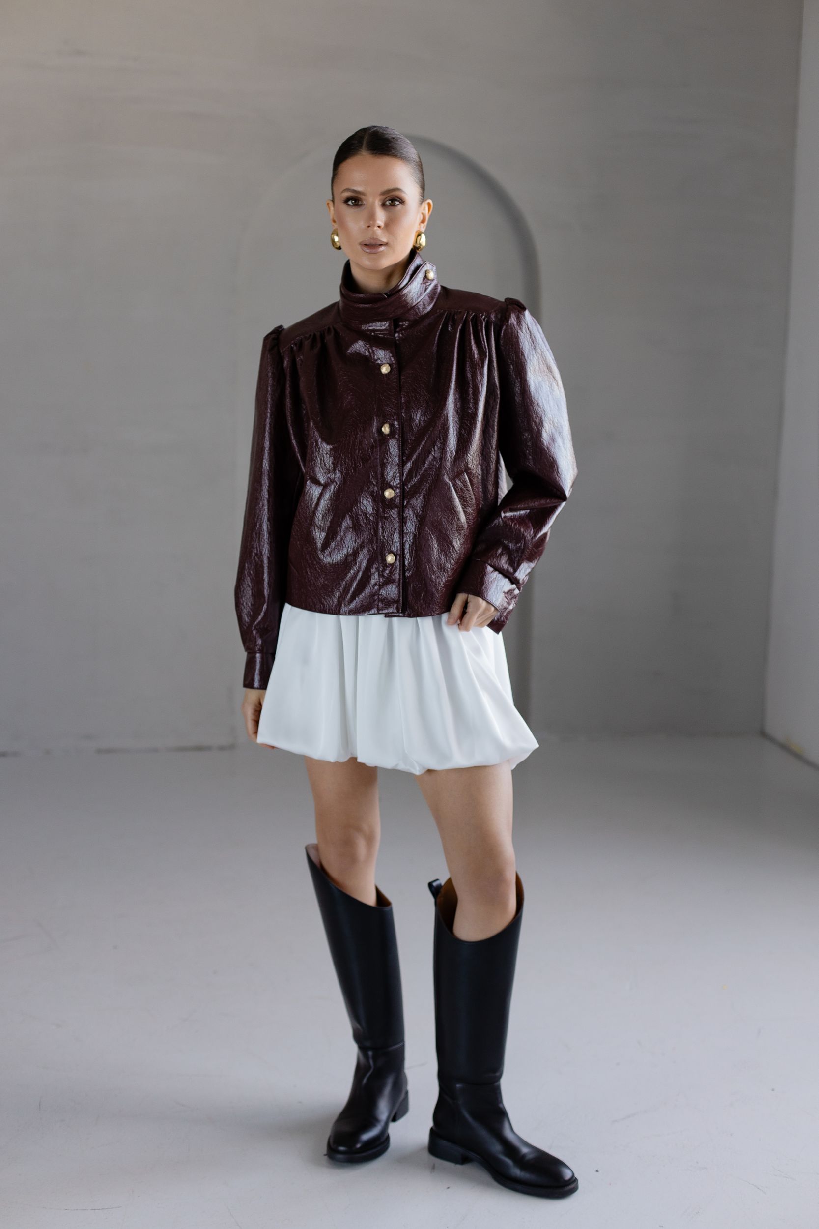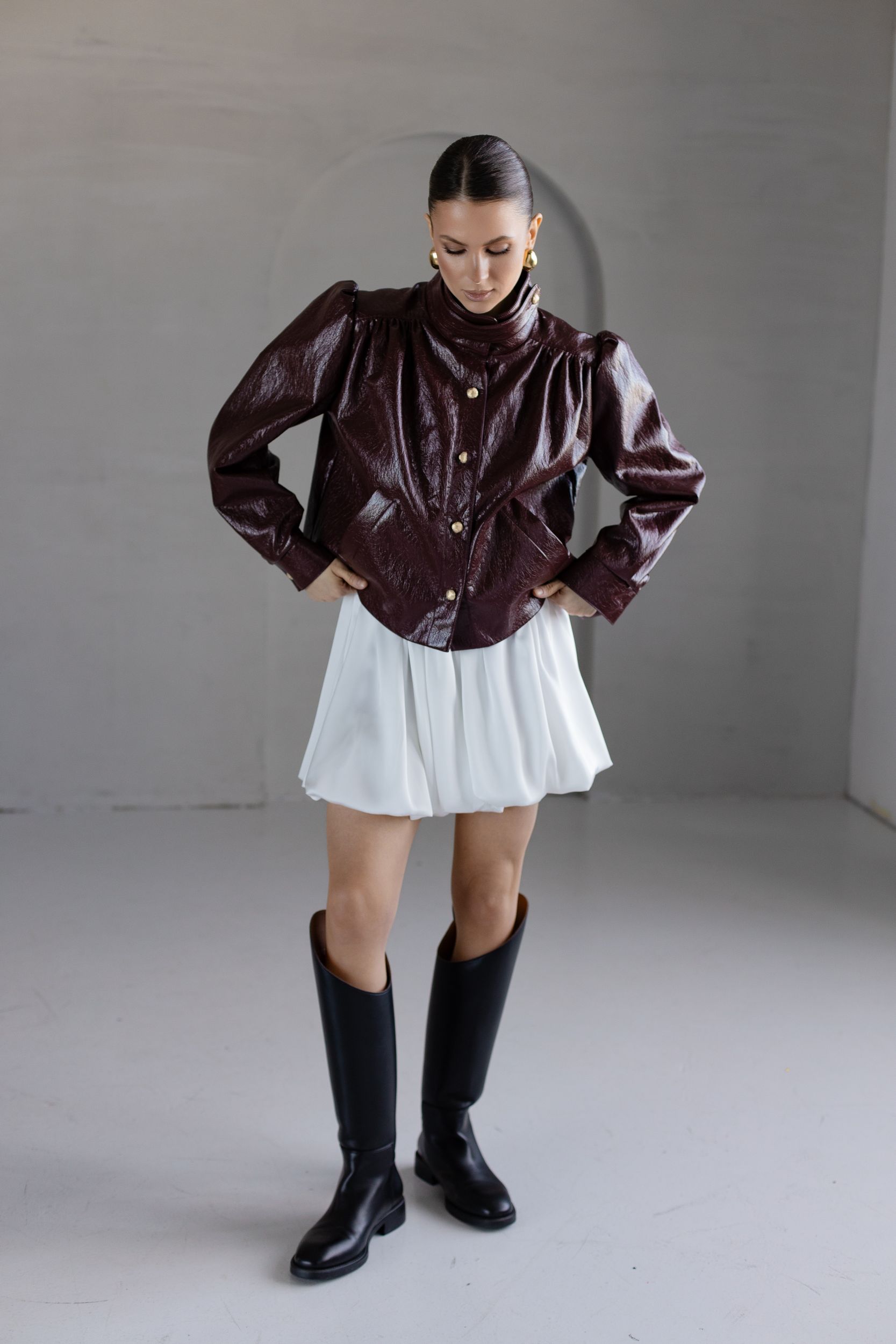 Расклешенный подол с фактурными складками.