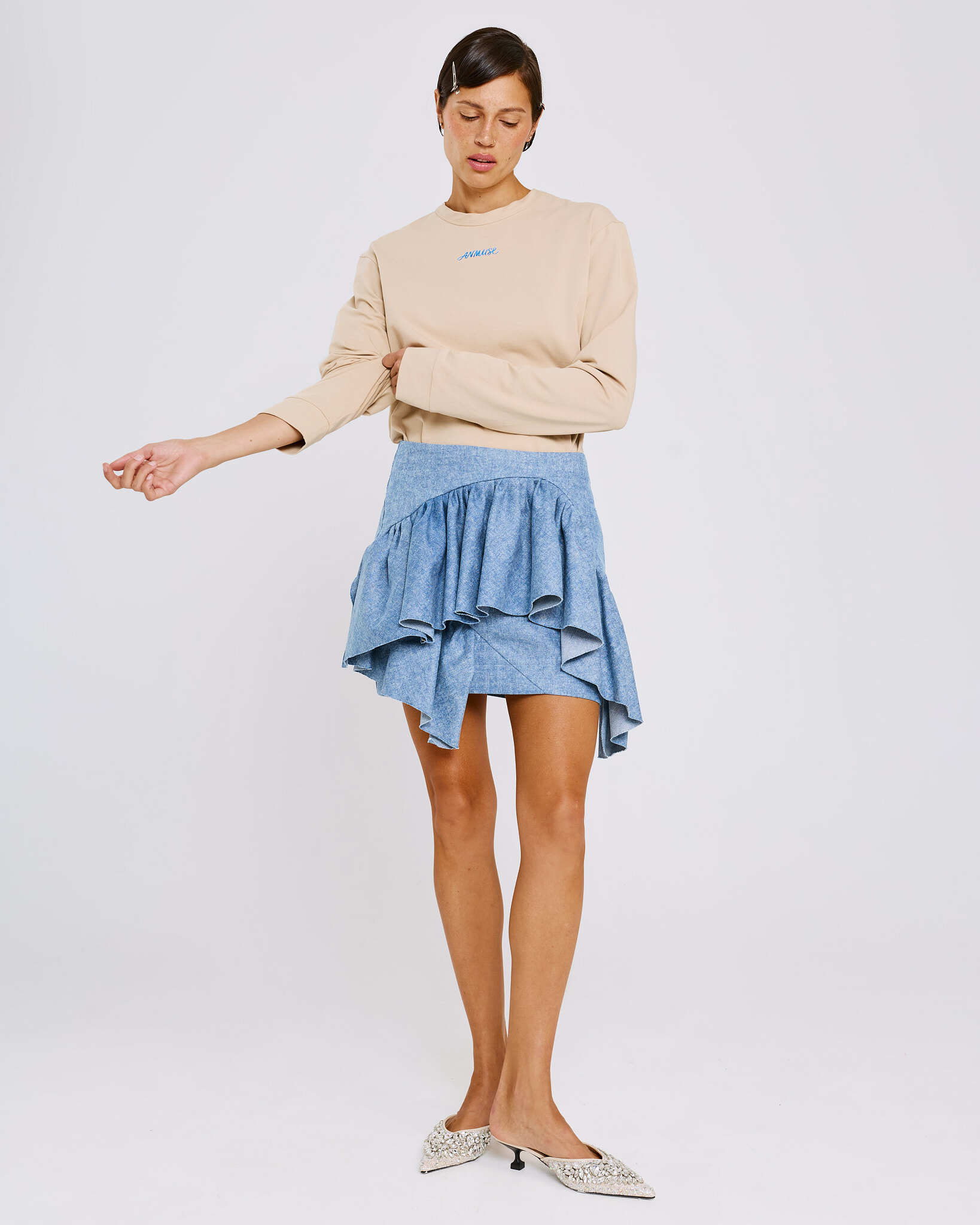 Юбка мини из денима с воланами