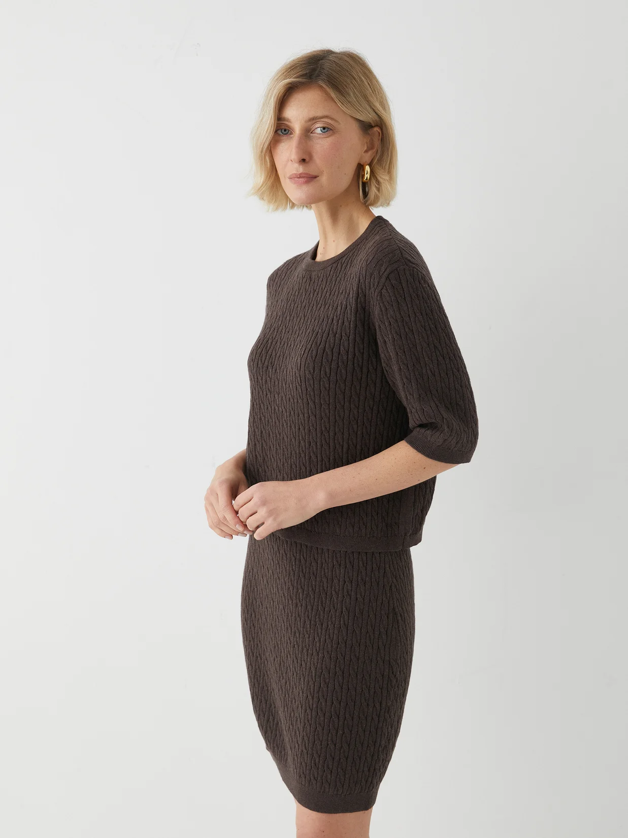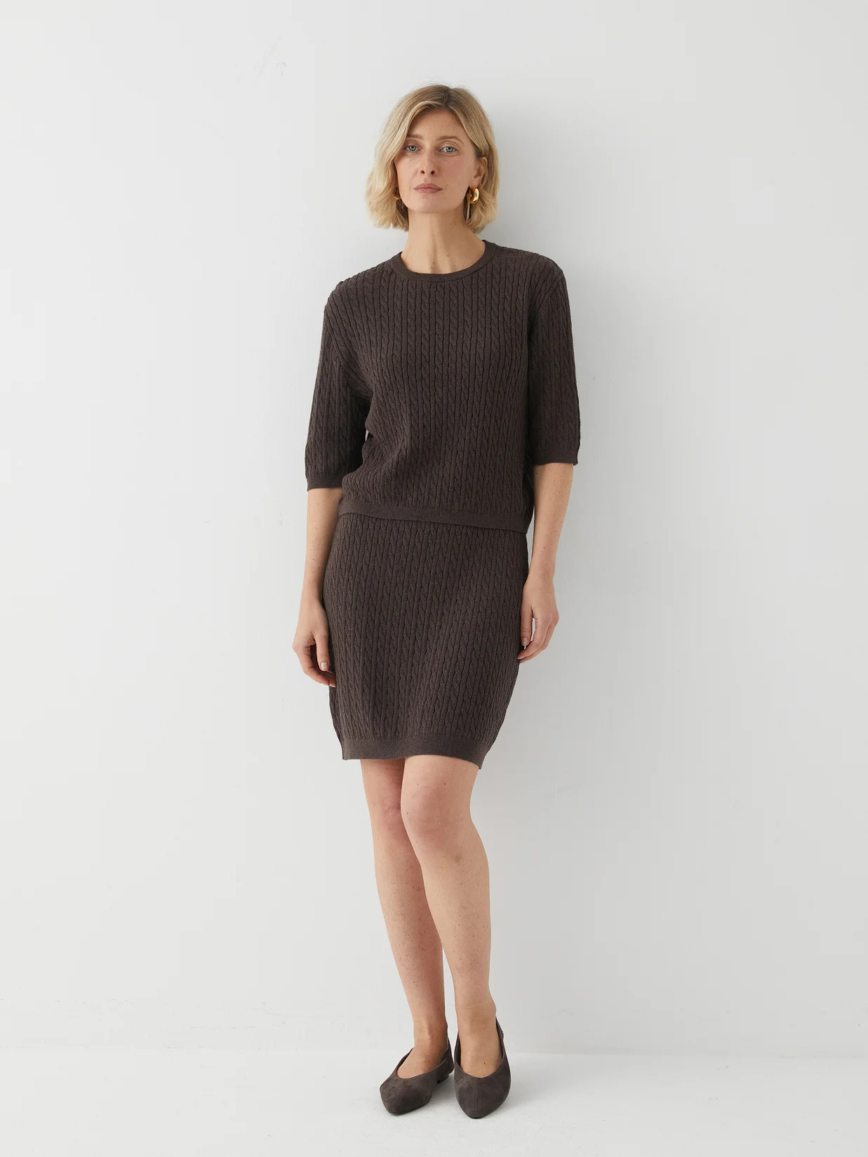 Стильная и уютная вещь, которая станет ярким акцентом в вашем гардеробе. Узор «косы» создаёт интересный и динамичный рисунок, придавая юбке оригинальность и изысканность.