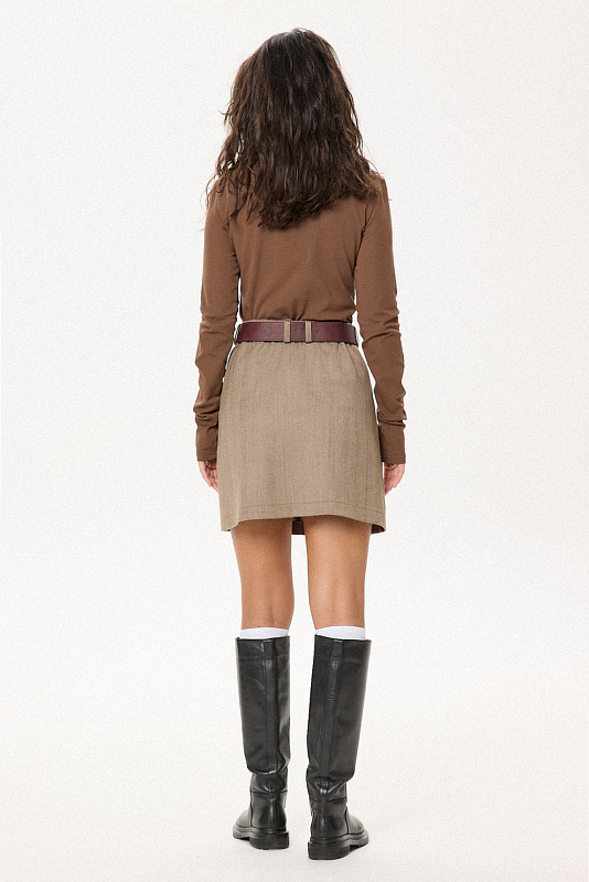 Мини-юбка светло-коричневого оттенка для создания элегантных образов. Благодаря составу модель сохраняет безупречную форму в течение всего дня и отличается повышенной износостойкостью. Шерсть обеспечивает тепло и комфорт, а добавление лайкры гарантирует идеальную посадку по фигуре. Универсальный предмет гардероба, который легко дополнить как кашемировым свитером, так и шелковой блузой.