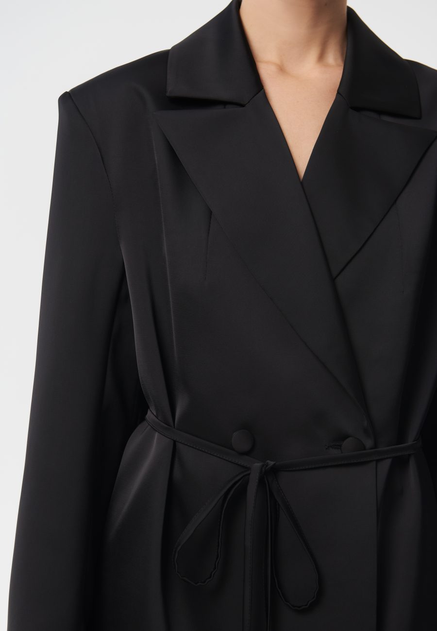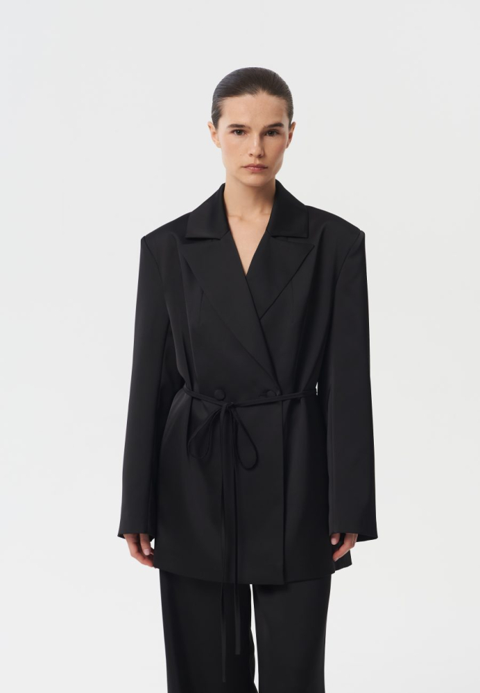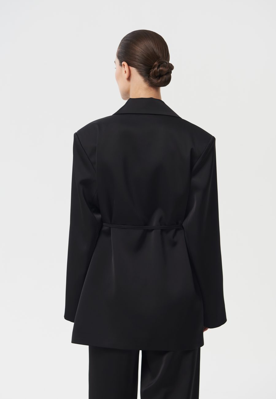 Жакет классического кроя, умеренного объема, с расширенным плечевым поясом. Изюминкой изделия является материал, из которой сделан костюм – вискоза плательная с деликатным мерцанием, что придает классическому крою новое прочтение и праздничное настроение.