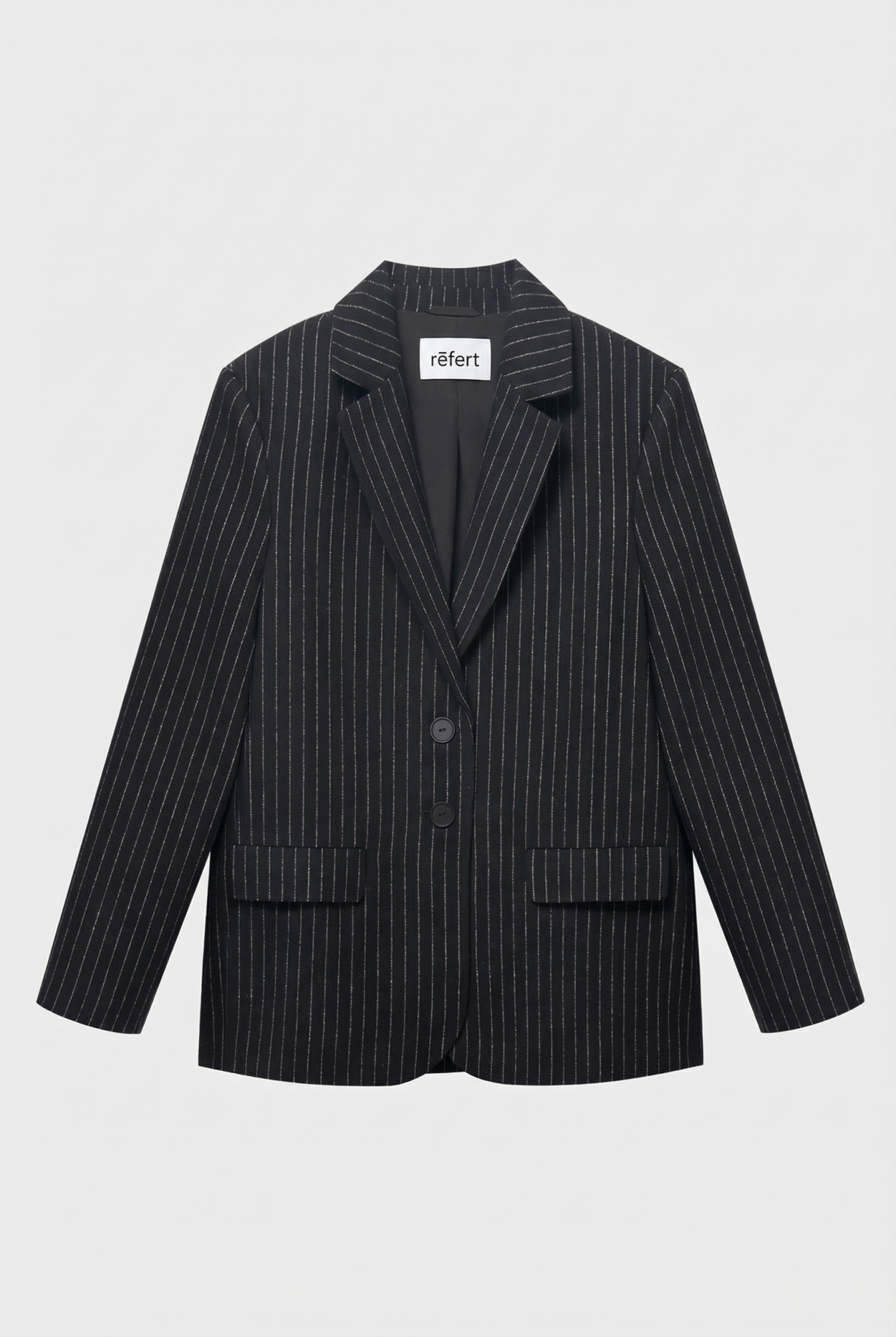 Прямой жакет чёрного цвета в полоску — незаменимый предмет в гардеробе. Он отлично держит форму, смотрится лаконично и дорого. Материал наполовину состоит из шерсти и содержит хлопок: это комфортный вариант на холодный сезон. Для кэжуальных выходов сочетайте жакет с плотным денимом или шортами из костюмной ткани, а для деловых и торжественных — с брюками или юбкой-карандашом.