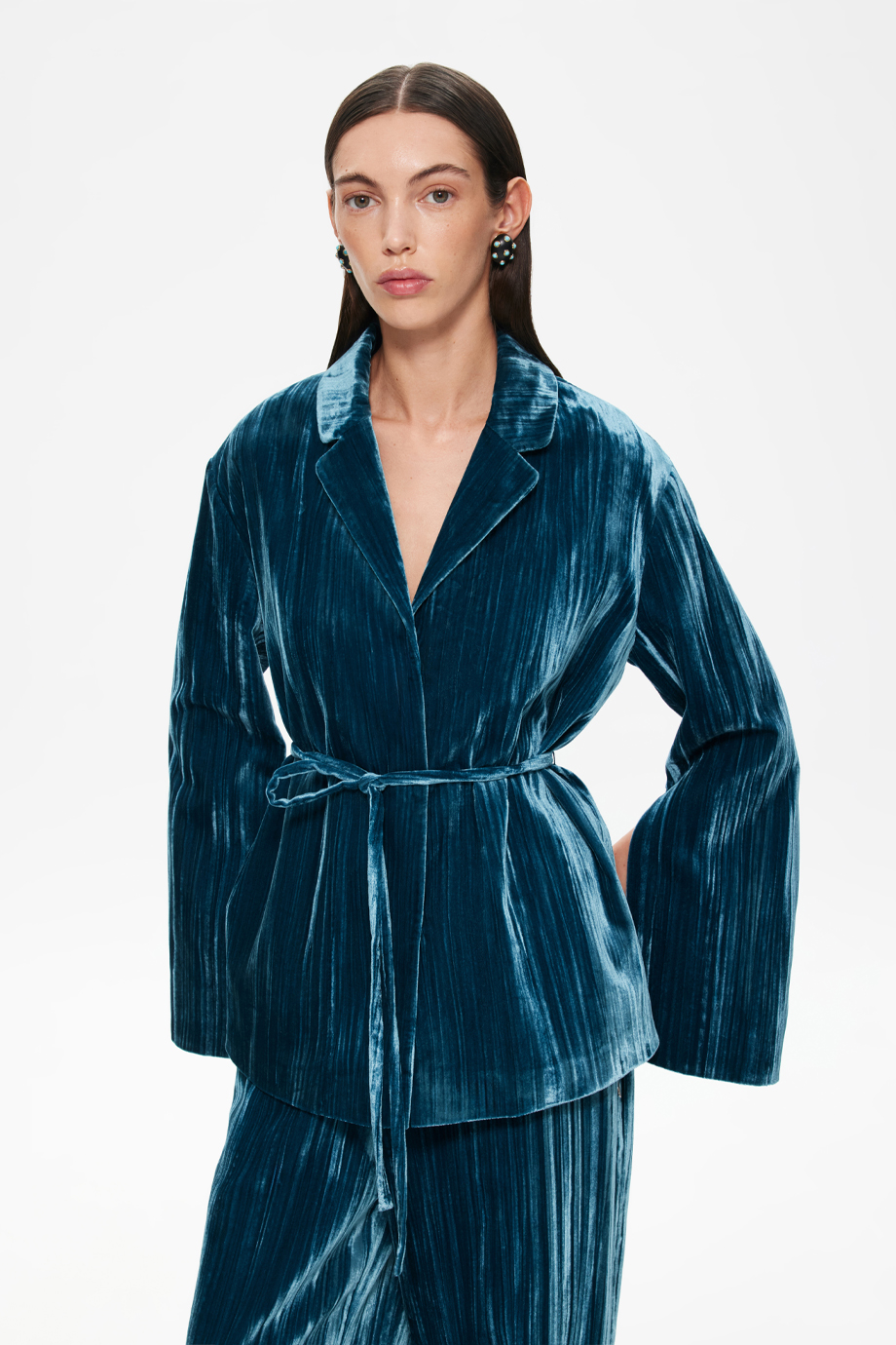 Изысканный и элегантный элемент гардероба, который подойдёт для создания как повседневного, так и вечернего образа. Жакет выполнен из высококачественного бархата, который приятен на ощупь и придаёт изделию роскошный вид.