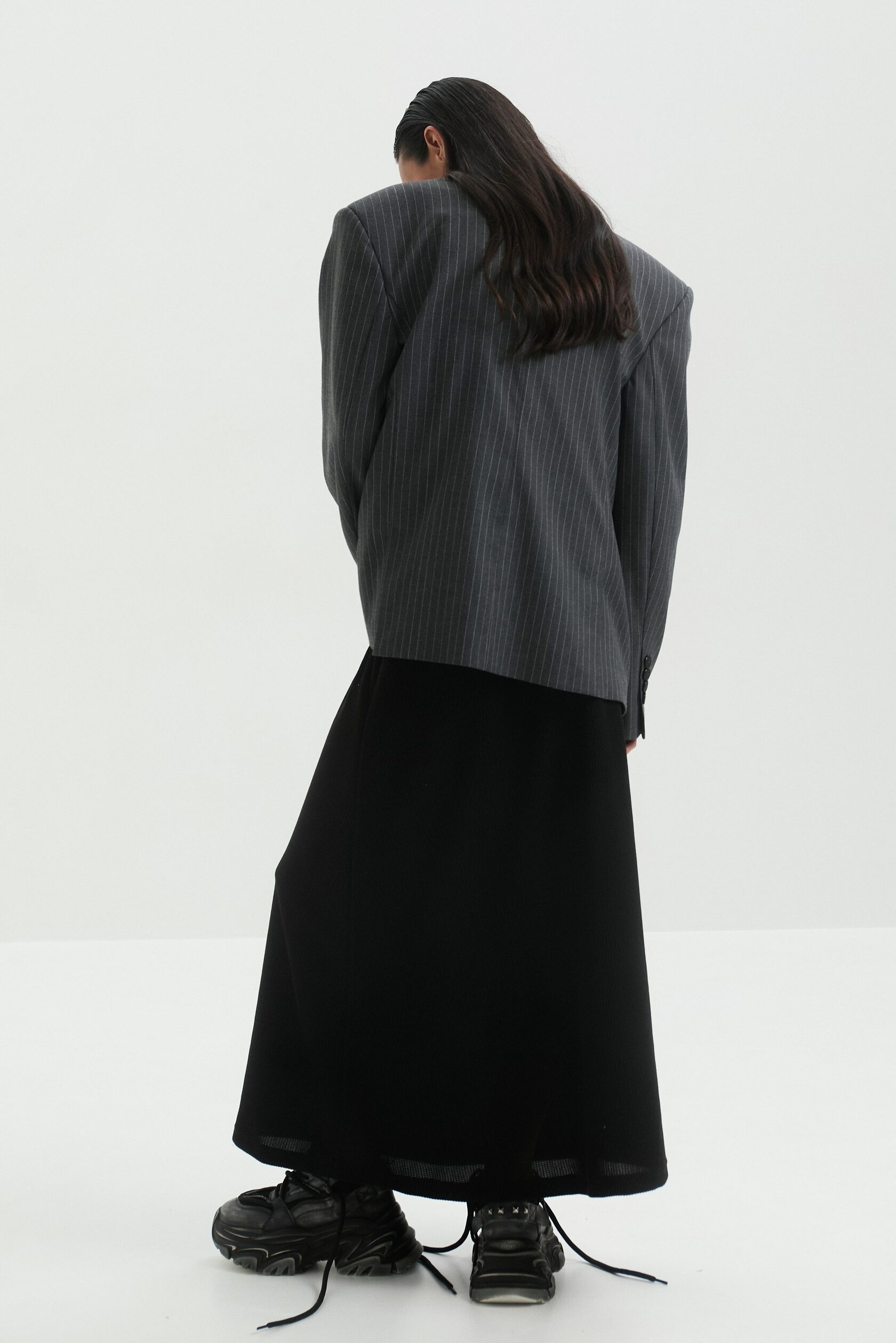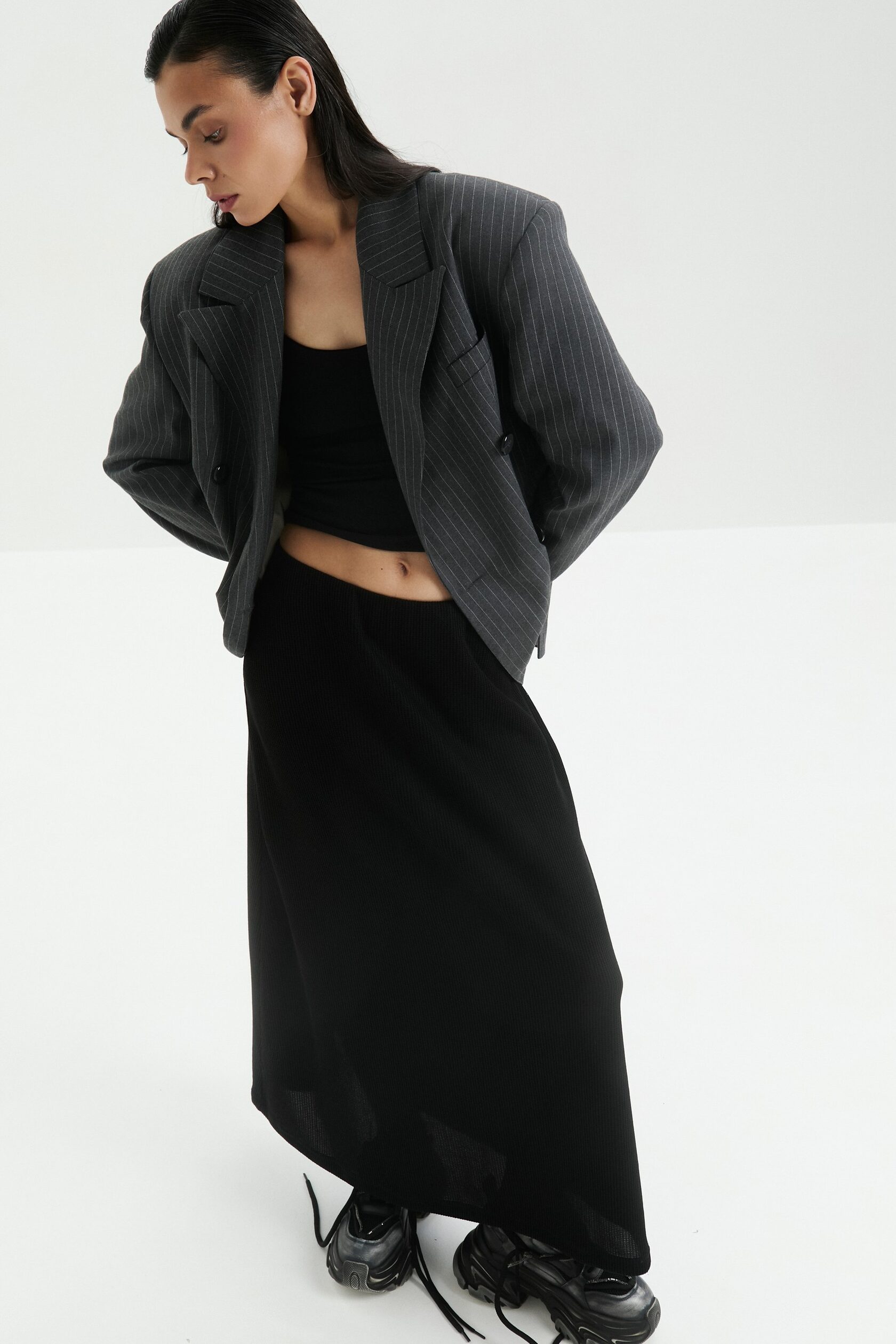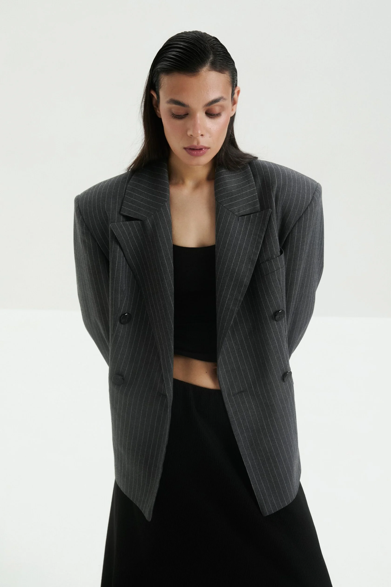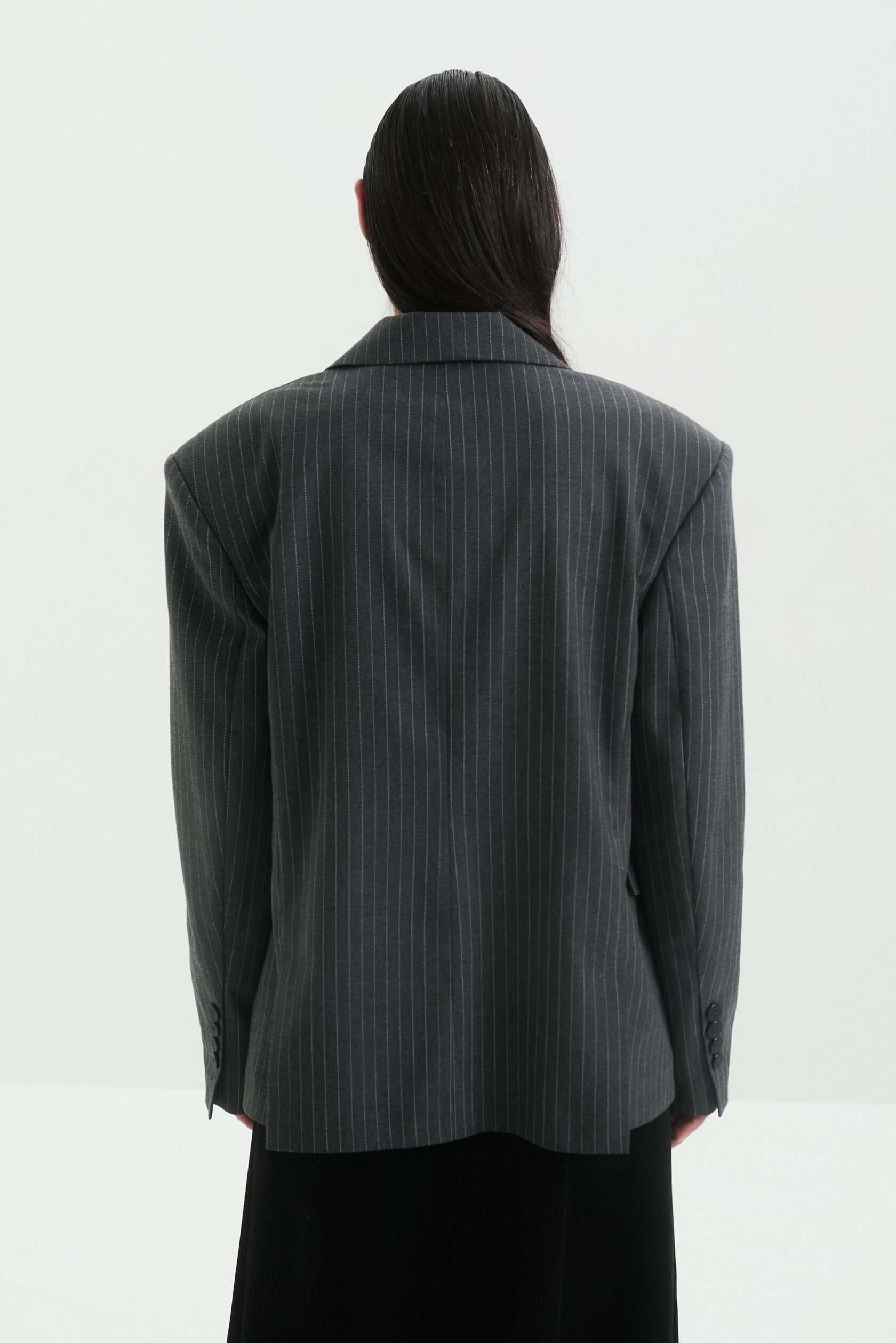 Жакет сочетающий в себе элегантность и непринужденность. Тонкая полоска, двубортный крой, мягкое плечо и широкие лацканы делают его идеальным выбором для любого случая. Подчеркните талию с помощью пояса, чтобы создать более приталенный силуэт.