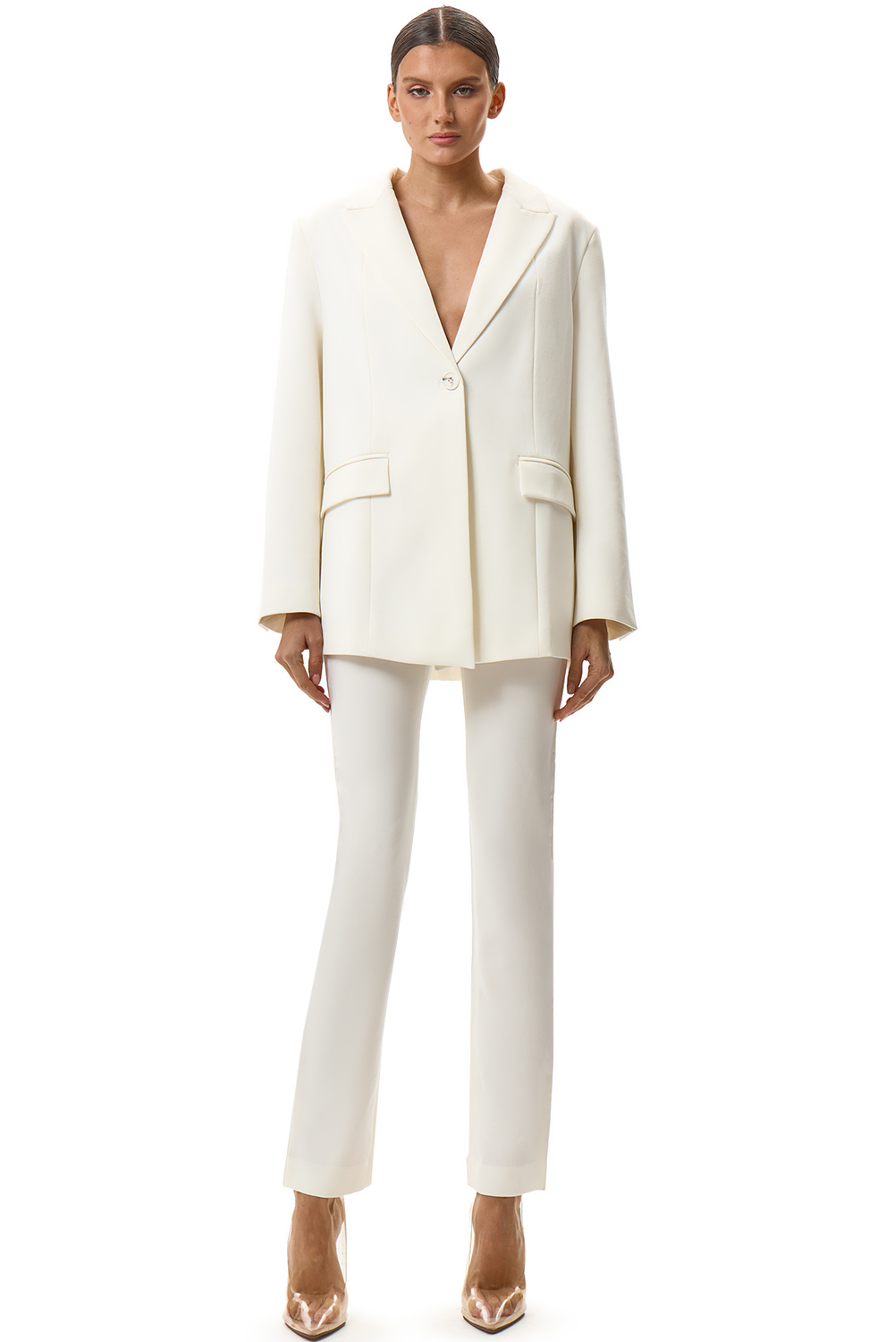 Жакет в концептуальном стиле оверсайз выполнен из приятной на ощупь костюмной ткани на подкладе. Модель с отложным английским воротником, фиксируется на пуговицу, по бокам карманов — вертикальные клапаны. В качестве акцентных деталей — выраженные рельефы. Рекомендуем стилизовать жакет с широкими брюками из комплекта, а также юбками, леггинсами, денимом, платьями. Масса вариантов стилизации и ваш уникальный стиль!