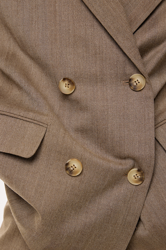 Двубортный объемный жакет на пуговицах из рогожки, с акцентными плечами