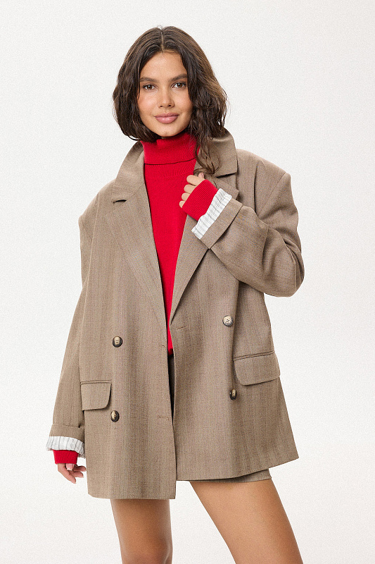 - Акцентный подклад в полоску на рукавах изделия добавит оригинальности и вариативности в ваших образах
