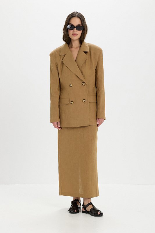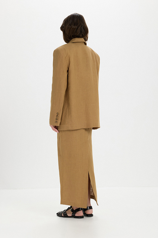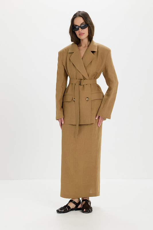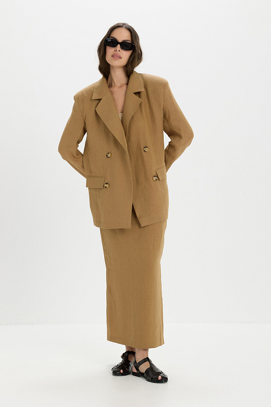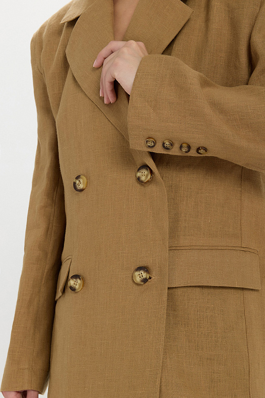 Стильный и практичный элемент гардероба, который станет отличным дополнением к вашему образу. Изготовленный из натурального льняного материала, жакет обеспечивает комфорт и лёгкость в носке.