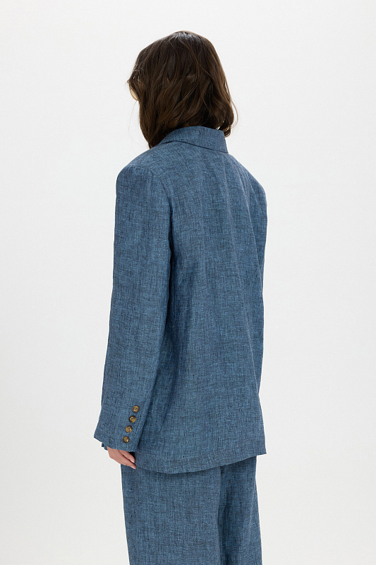Стильный и практичный элемент гардероба, который станет отличным дополнением к вашему образу. Изготовленный из натурального льняного материала, жакет обеспечивает комфорт и лёгкость в носке.