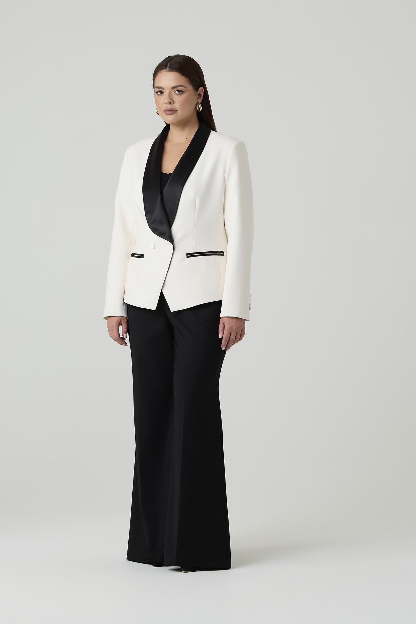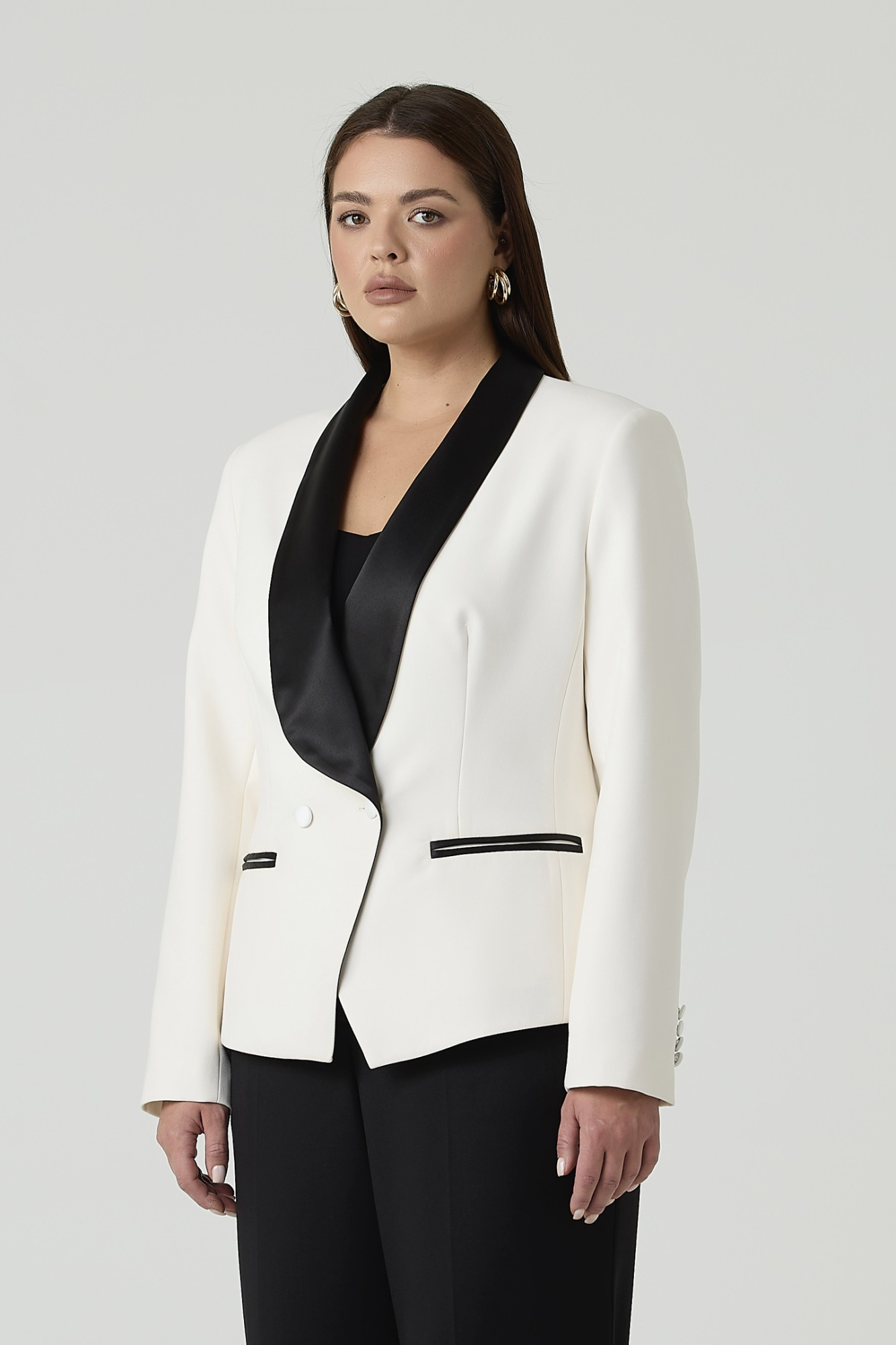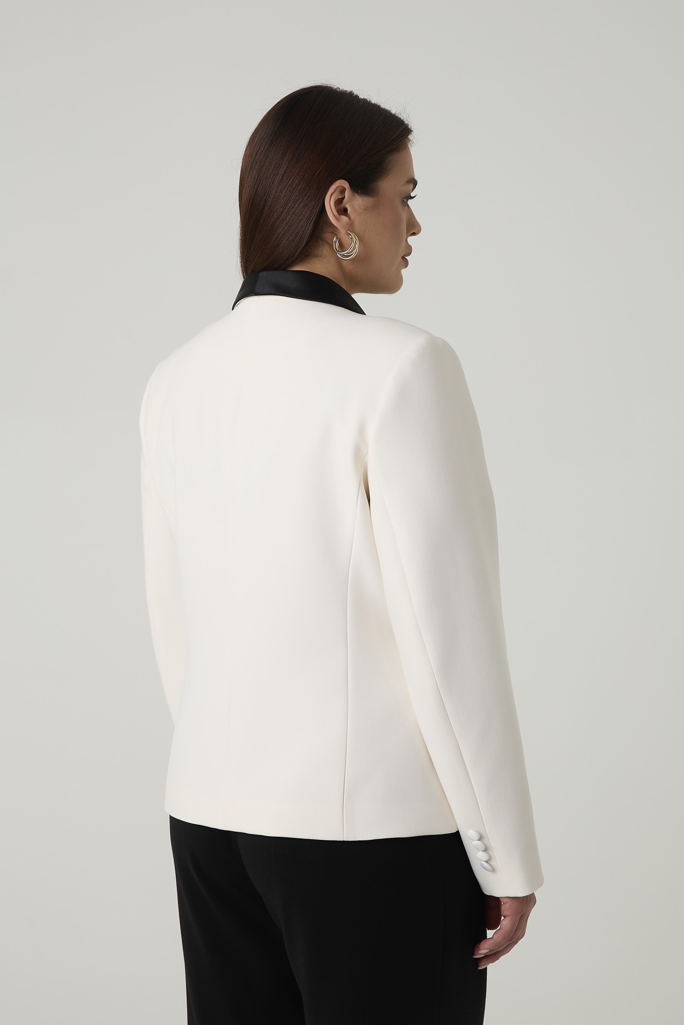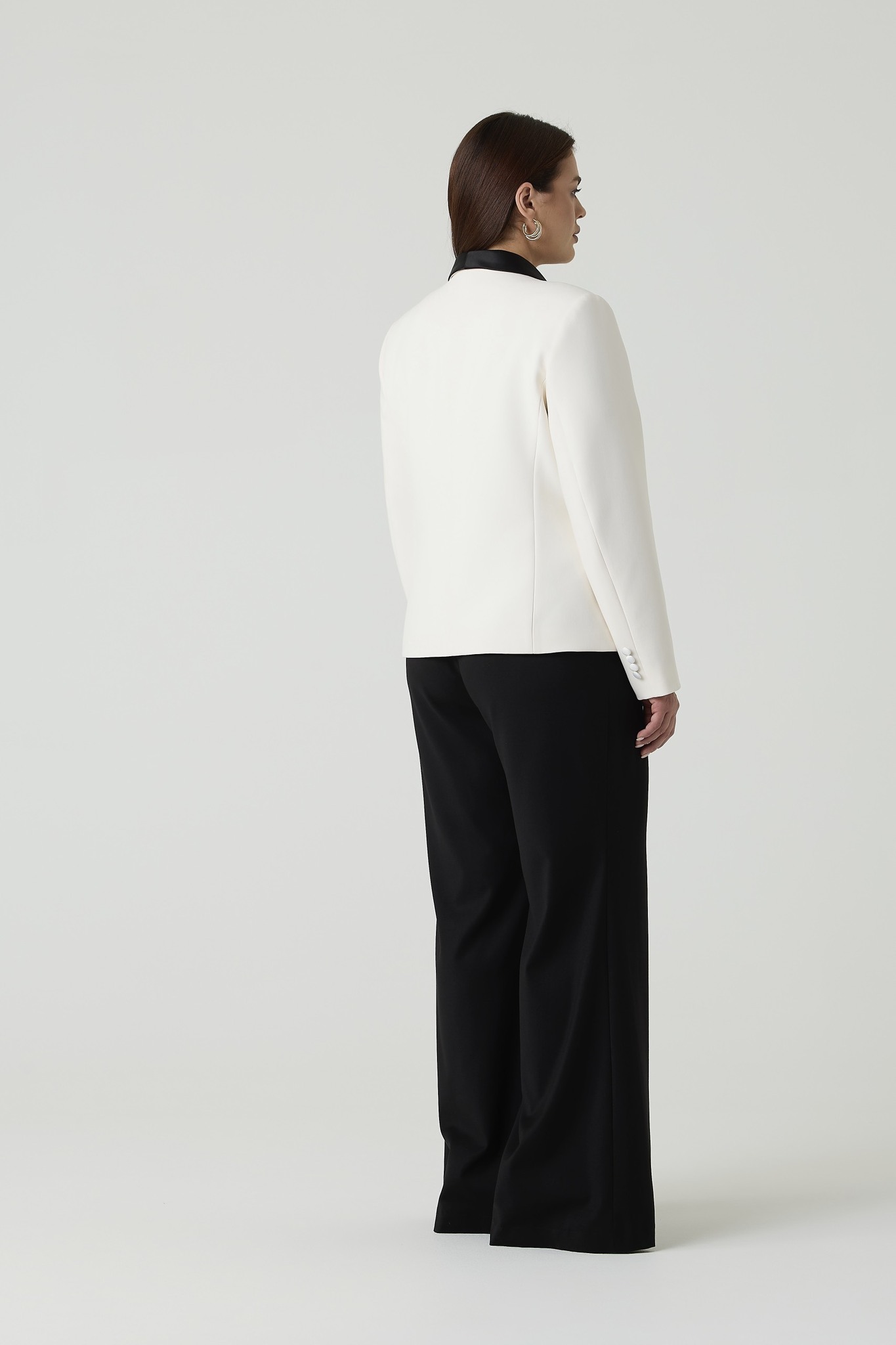 - контрастный атласный воротник-шалька и отделка карманов придают образу изысканность и оригинальность