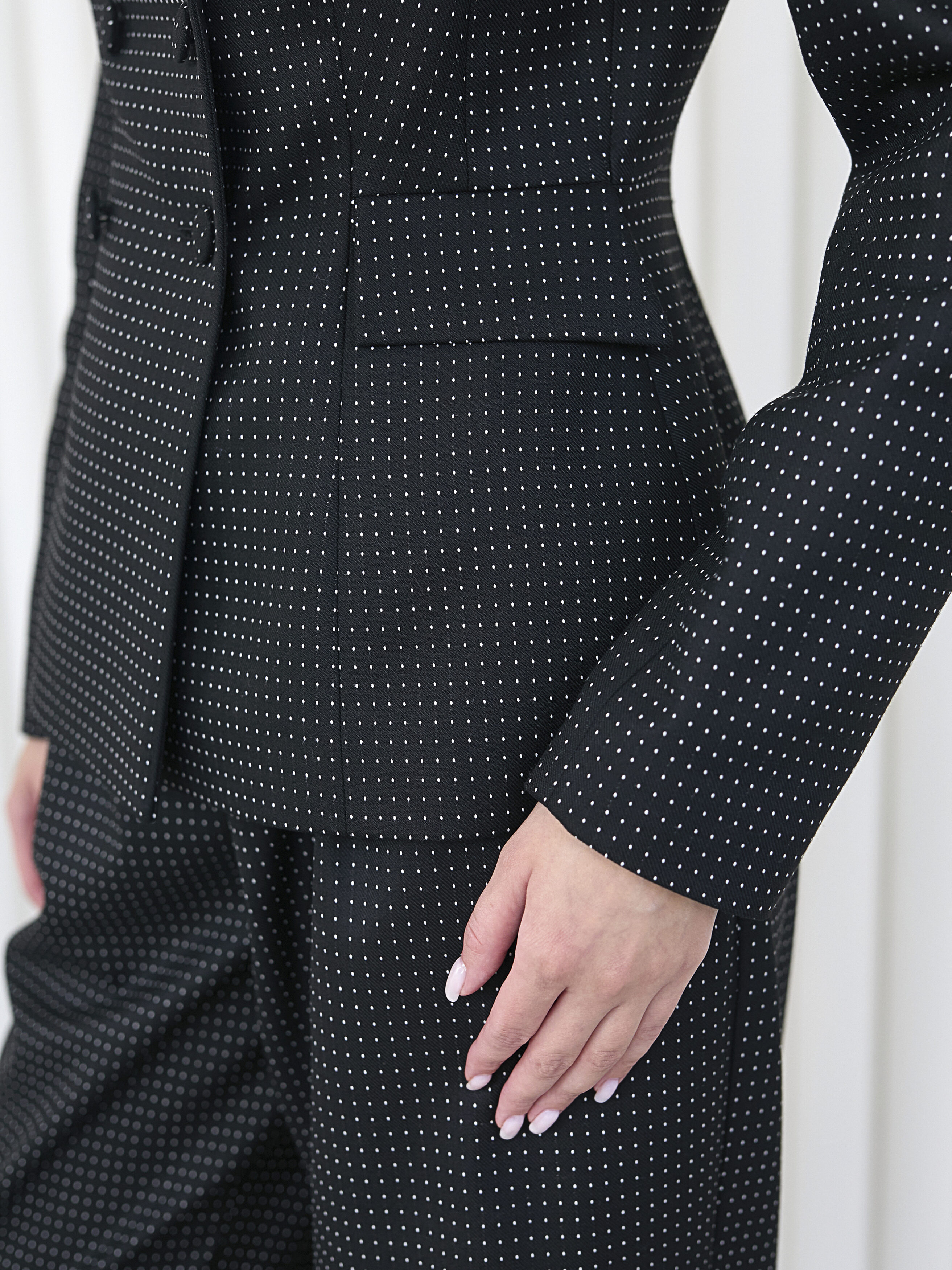 Идеально сочетается с брюками и юбкой из капсулы в горошек.
