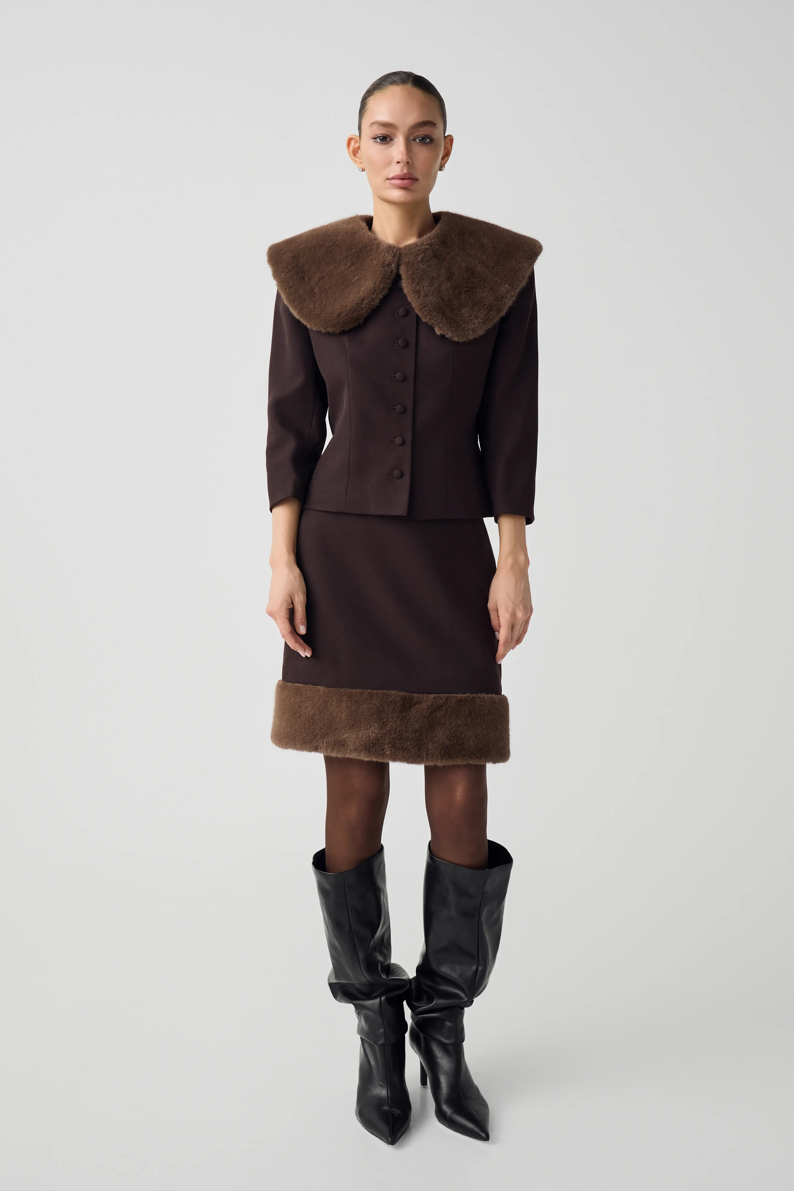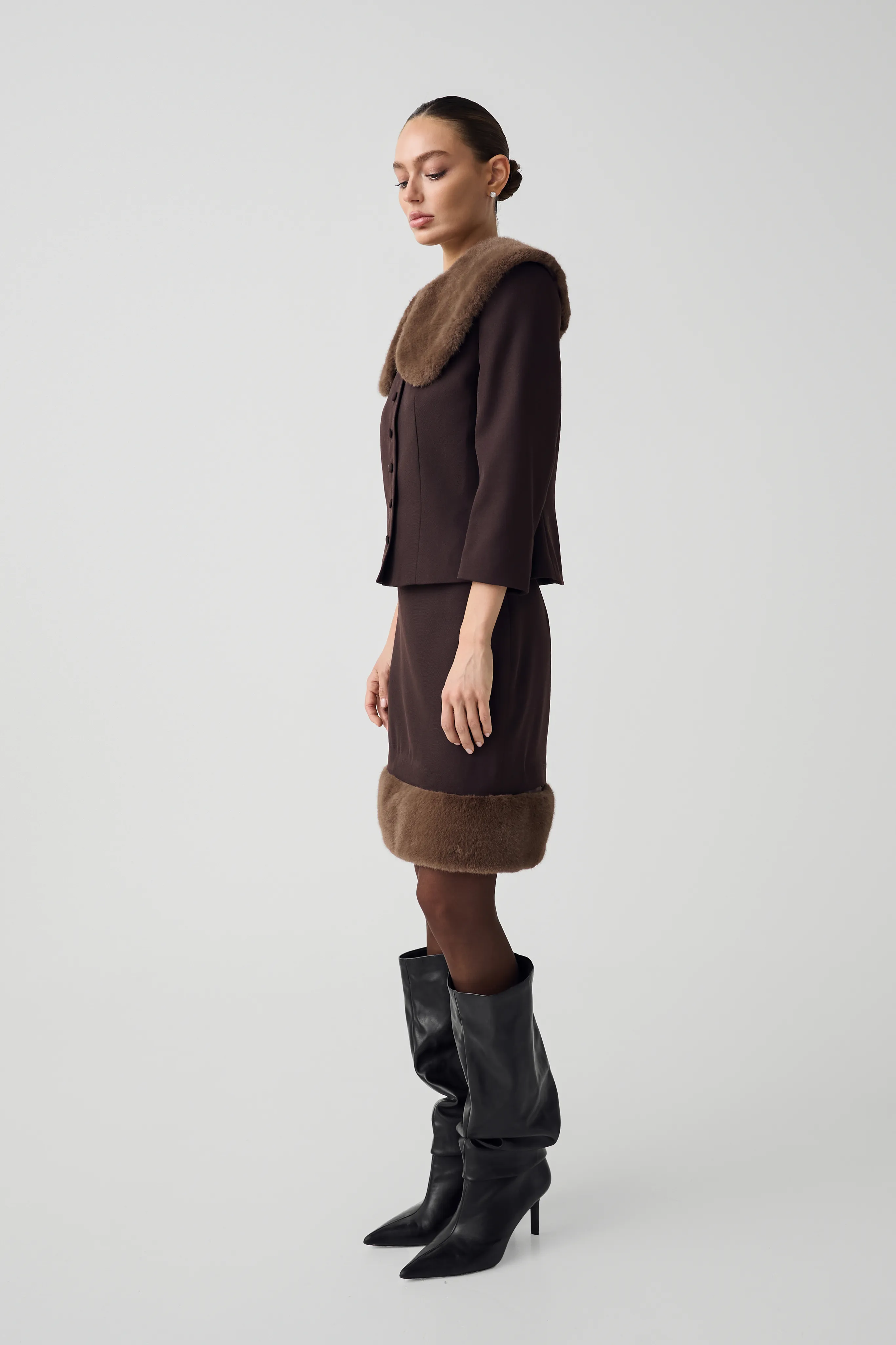 Костюм из шерсти с мехом разработан совместно в коллаборации со стилистом Ксенией Перской.