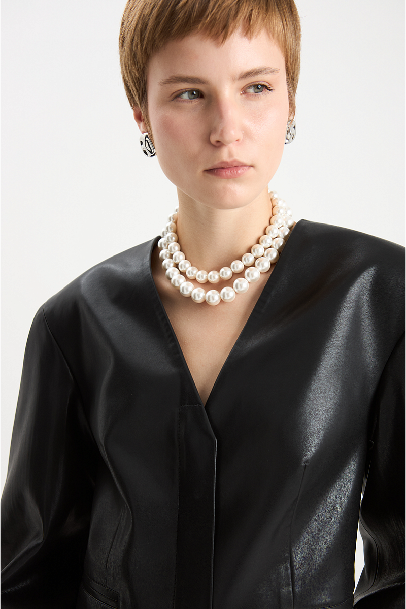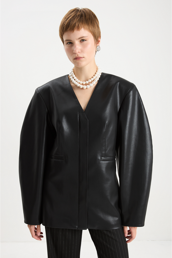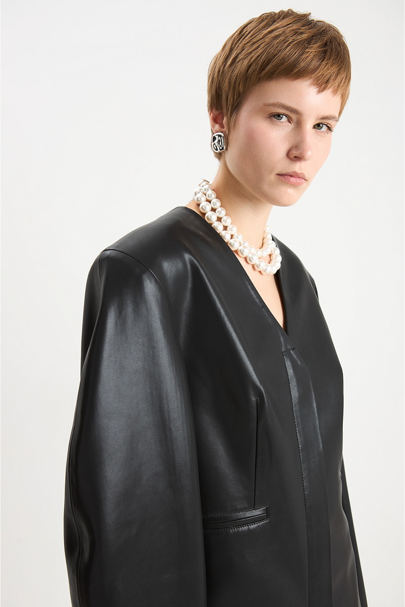 Жакет из эко-кожи О-силуэта