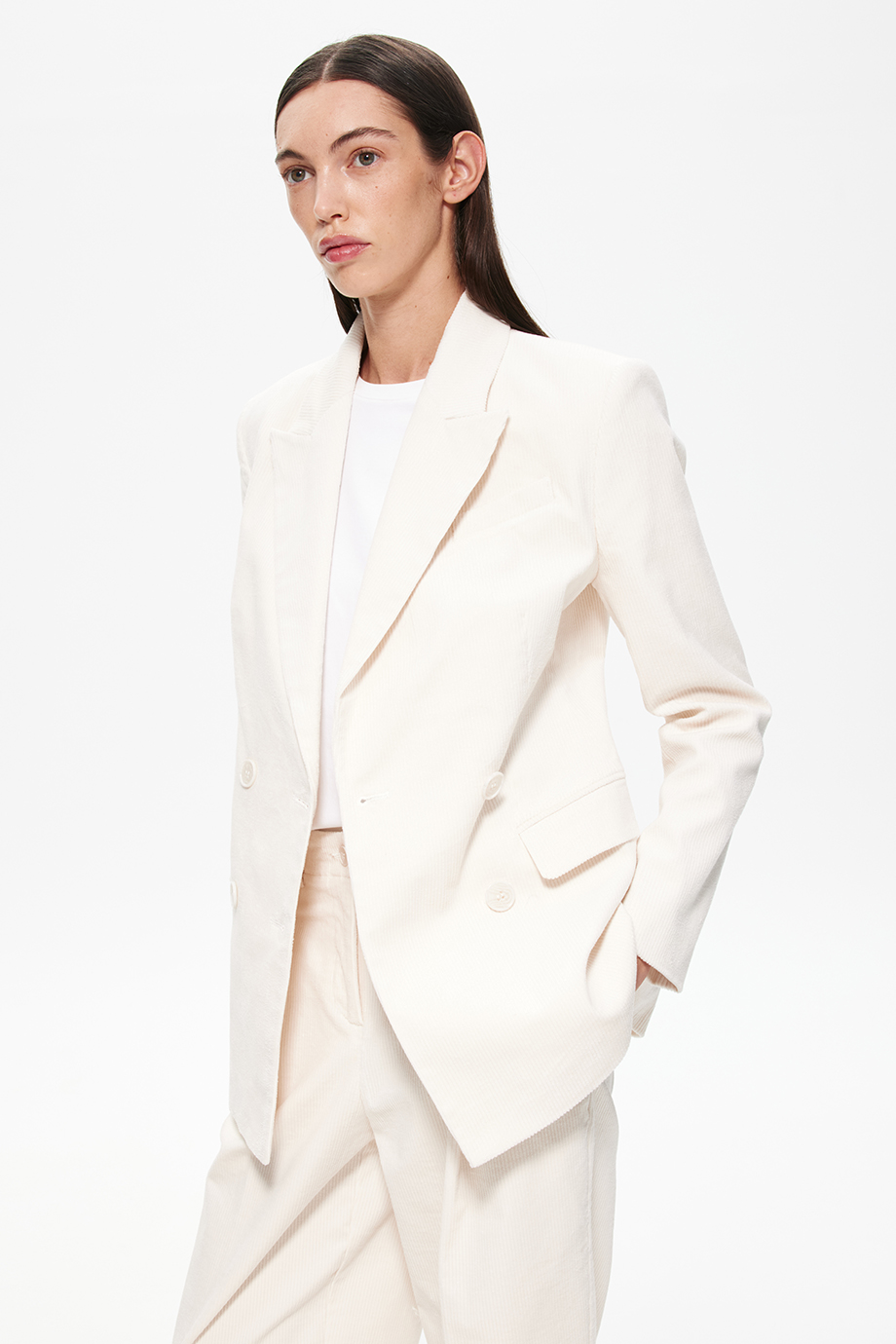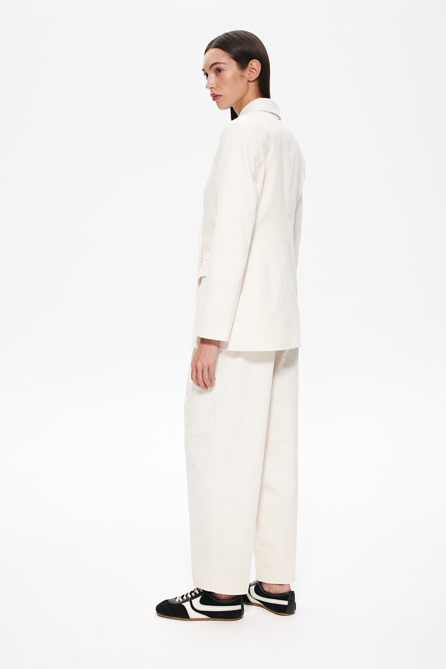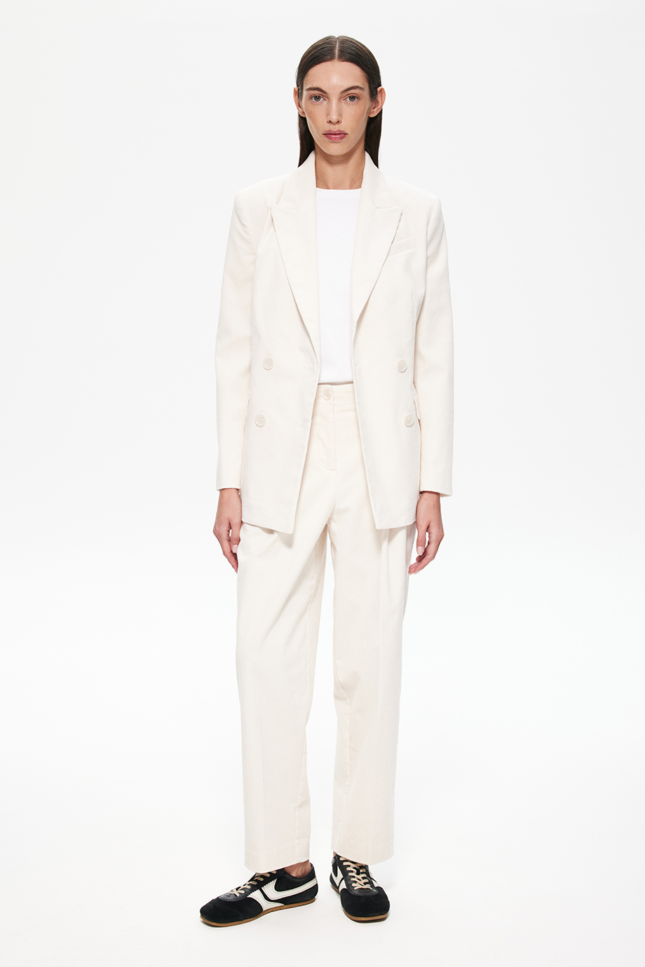 Молочный цвет универсален и легко сочетается с различными элементами гардероба, позволяя создавать разнообразные образы — от деловых до повседневных.