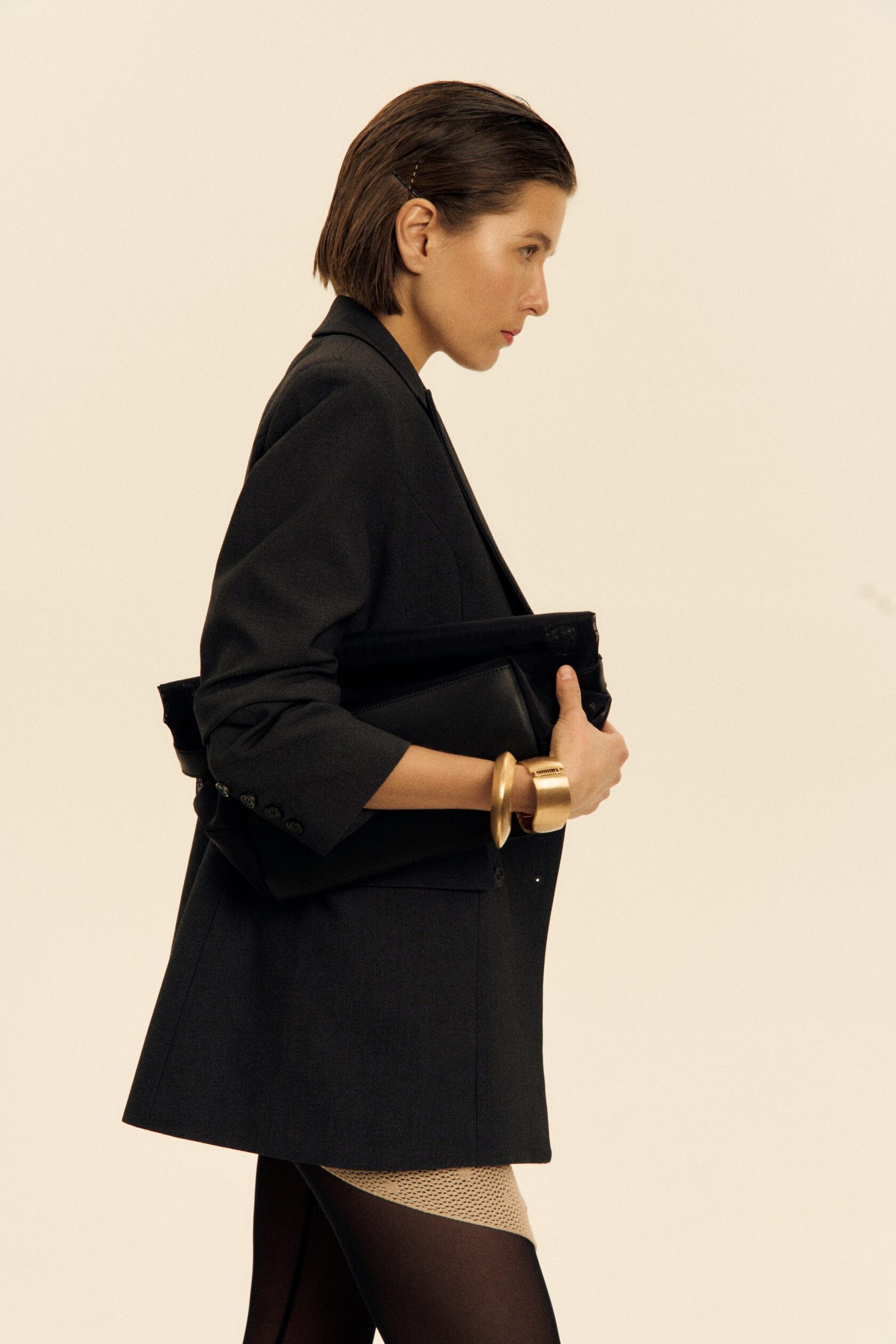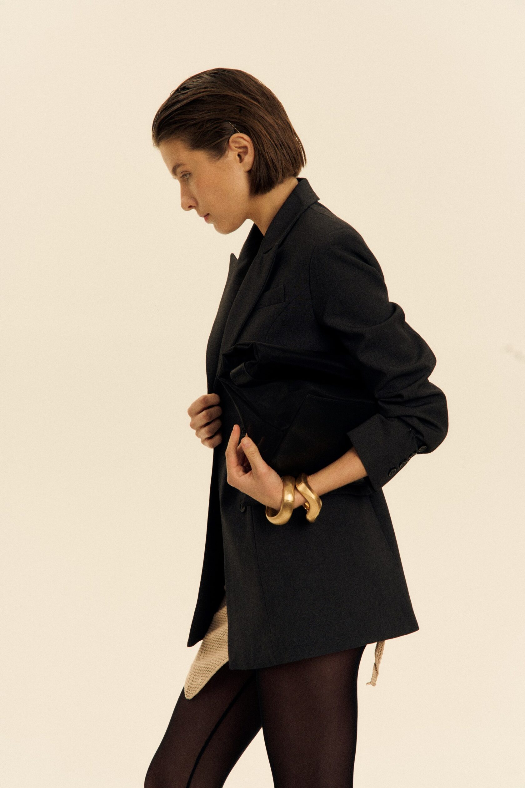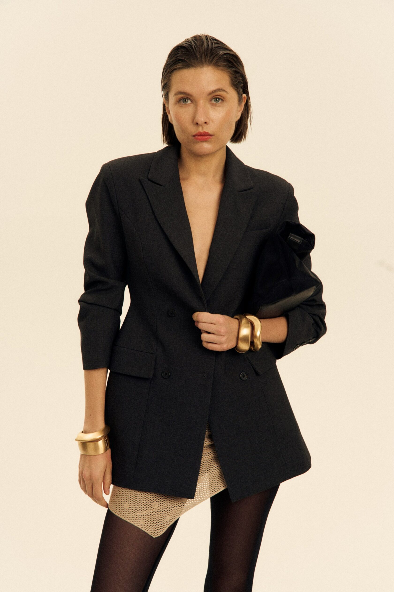 Жакет слегка приталенного кроя, подчеркивающего силуэт.
