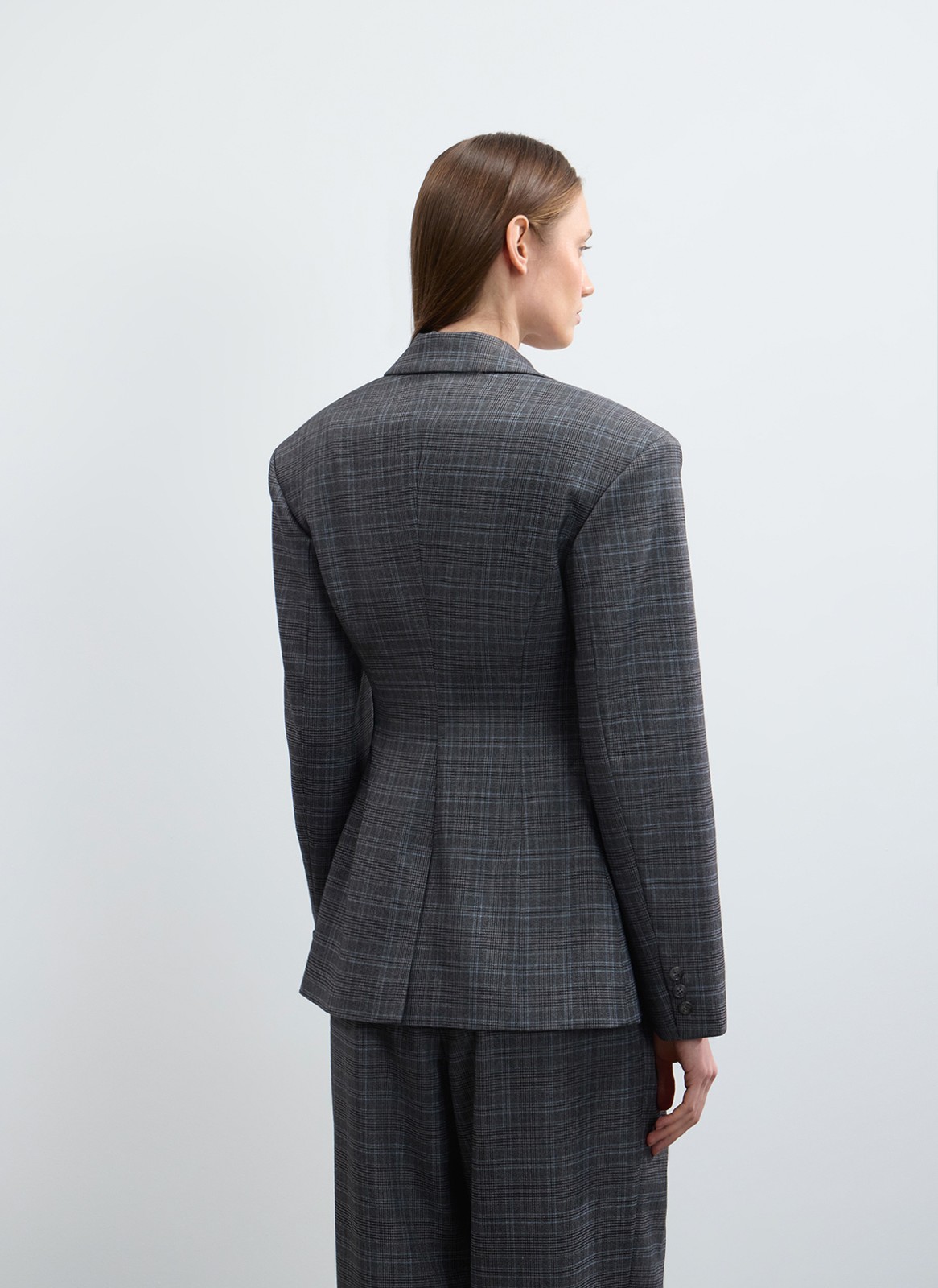 Для создания жакета мы использовали в меру плотную костюмную ткань, которая прекрасно держит форму и практически не мнётся.