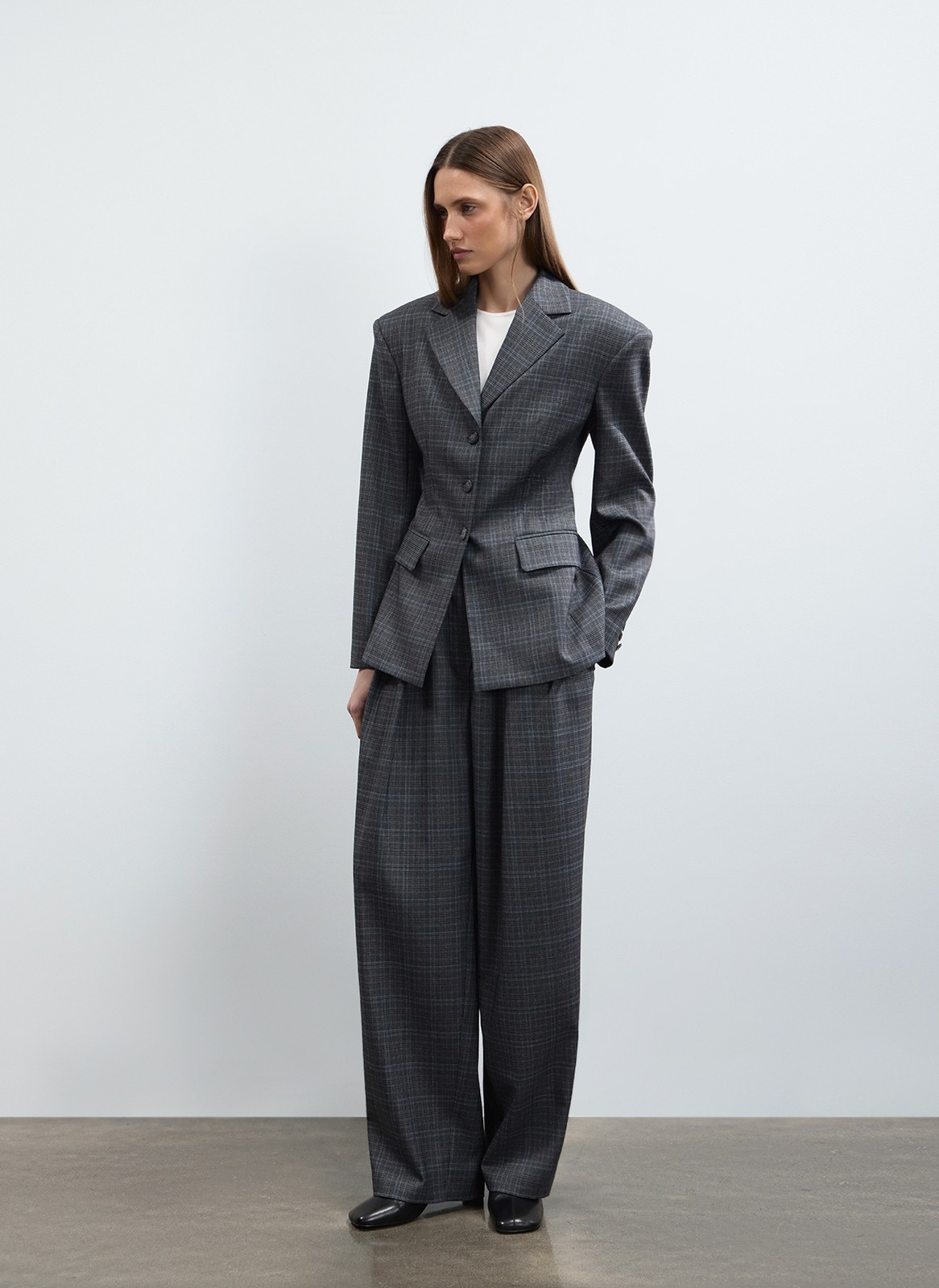 Изделие отлично смотрится с широкими брюками из новой коллекции.