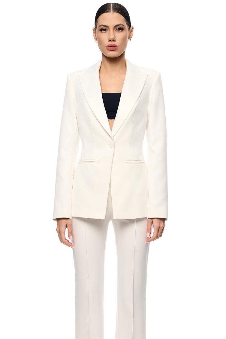 Однобортный жакет приталенного кроя выполнен из костюмной ткани с подкладом. Модель с выраженным английским воротником, дополненным атласной тканью, которая дарит благородные переливы при дневном и вечернем свете. Боковые втачные прорези карманов, длинные рукава, фиксация на пуговицу в цвет. Идеальная база из категории костюмной группы органично сочетается с юбками, брюками, а также платьями, денимом. Безупречная посадка по фигуре и ваш уникальный, выдержанный стиль!