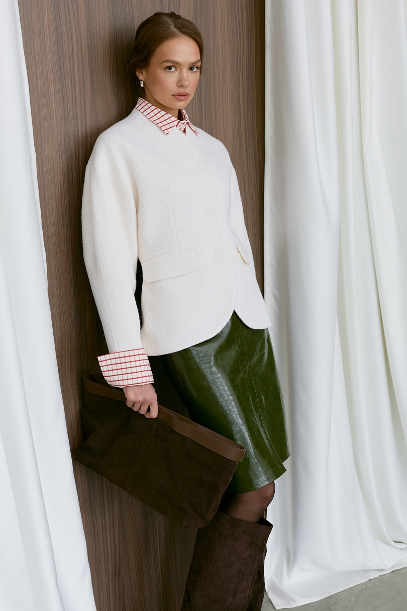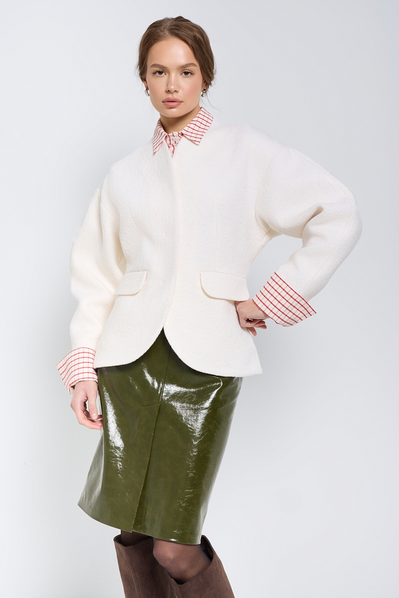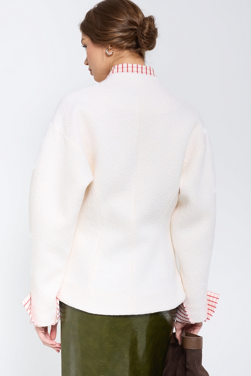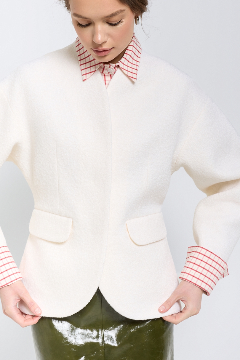 Элегантный жакет из фактурной шерсти в молочном оттенке станет стильным дополнением вашего гардероба. Мягкая натуральная шерсть приятна на ощупь и обеспечивает комфорт в прохладную погоду. Молочный оттенок придает образу нежности и утонченности. Жакет отличается изысканным кроем и аккуратностью исполнения деталей.