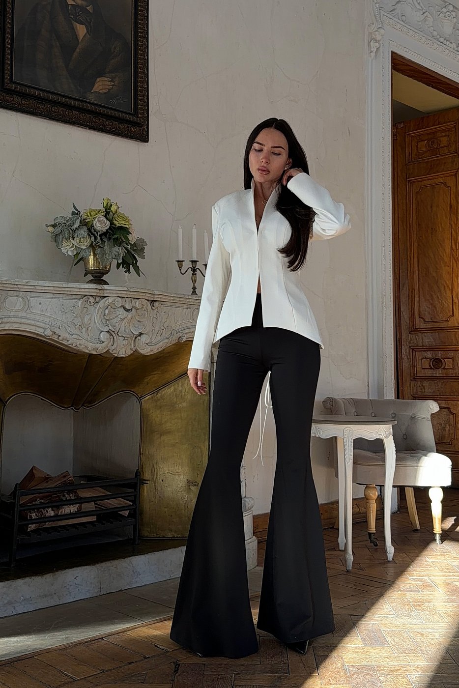 Стильный и элегантный элемент гардероба, который подчеркнёт вашу фигуру и добавит образу изысканности. Жакет имеет приталенный крой, который подчёркивает женственность силуэта. Шнуровка на спине позволяет регулировать посадку жакета и обеспечивает дополнительный акцент на талии.