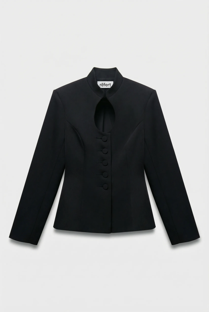 Черный приталенный жакет с фигурным вырезом – стильный акцент вашего образа! Визуально стройнит и подчеркивает достоинства фигуры. Подходит для работы, прогулок и встреч с друзьями – универсальность и элегантность в каждой детали.