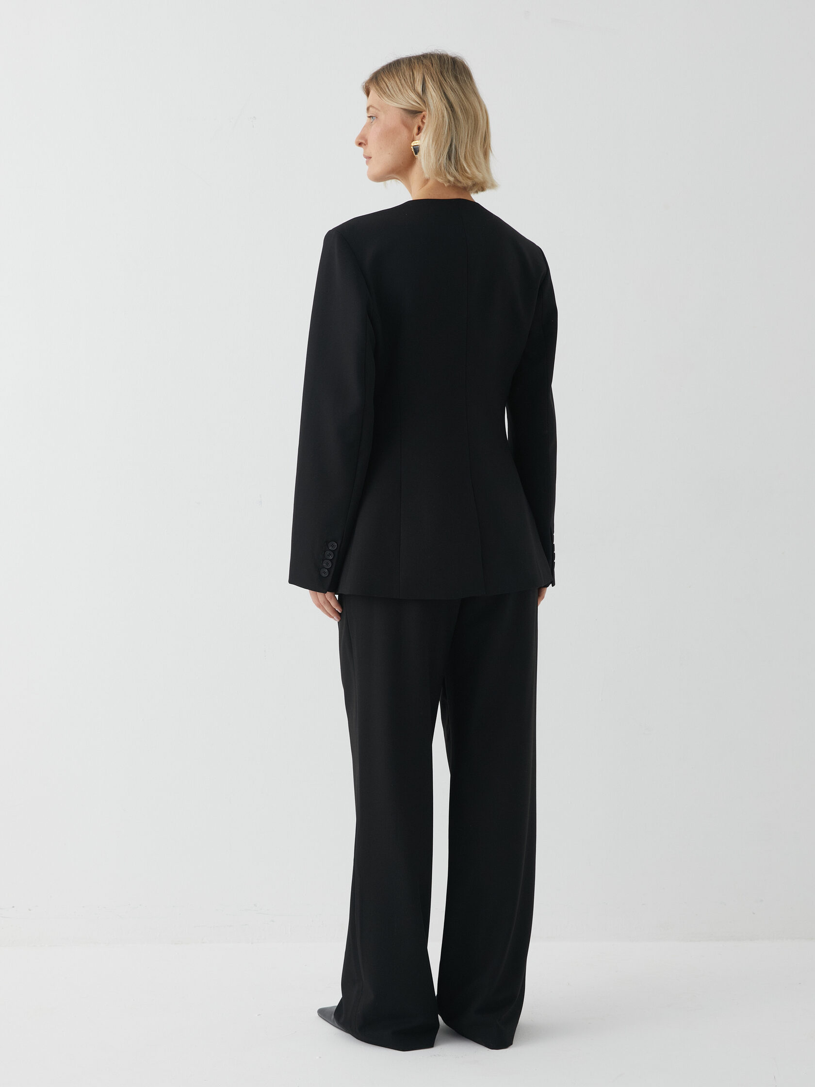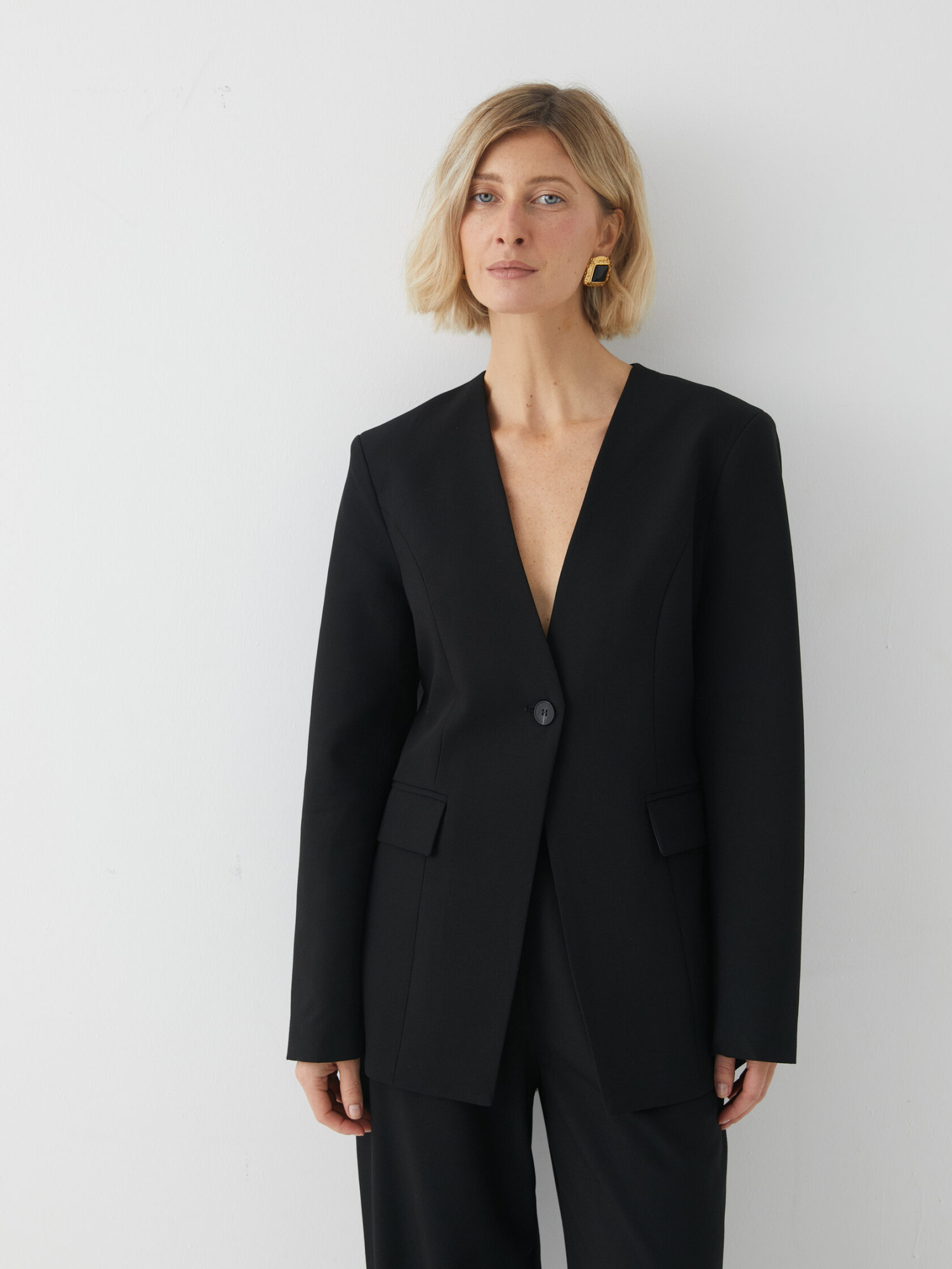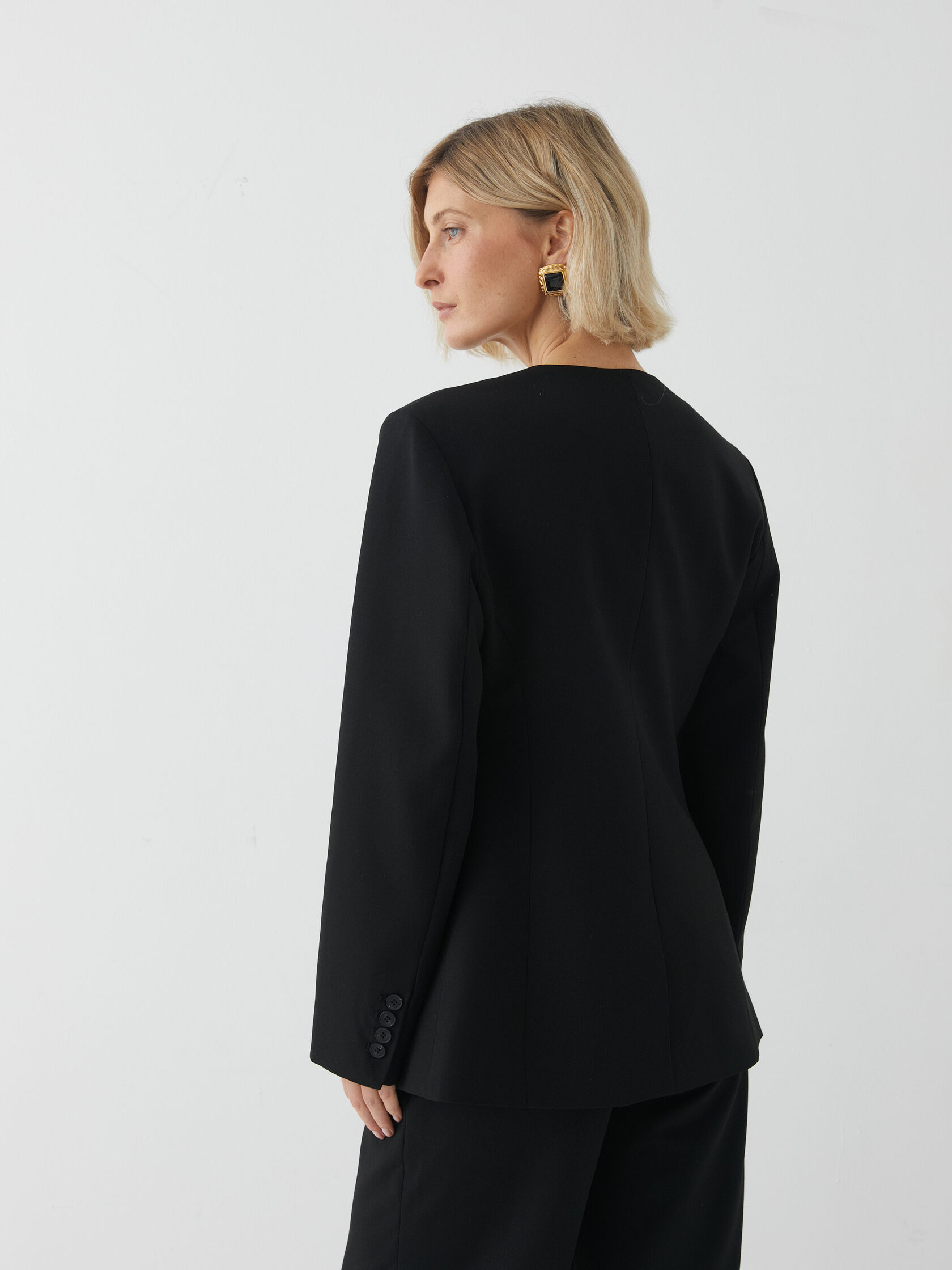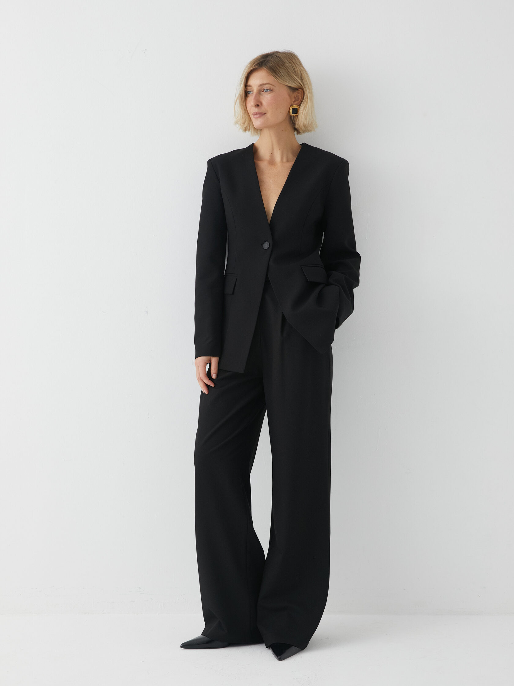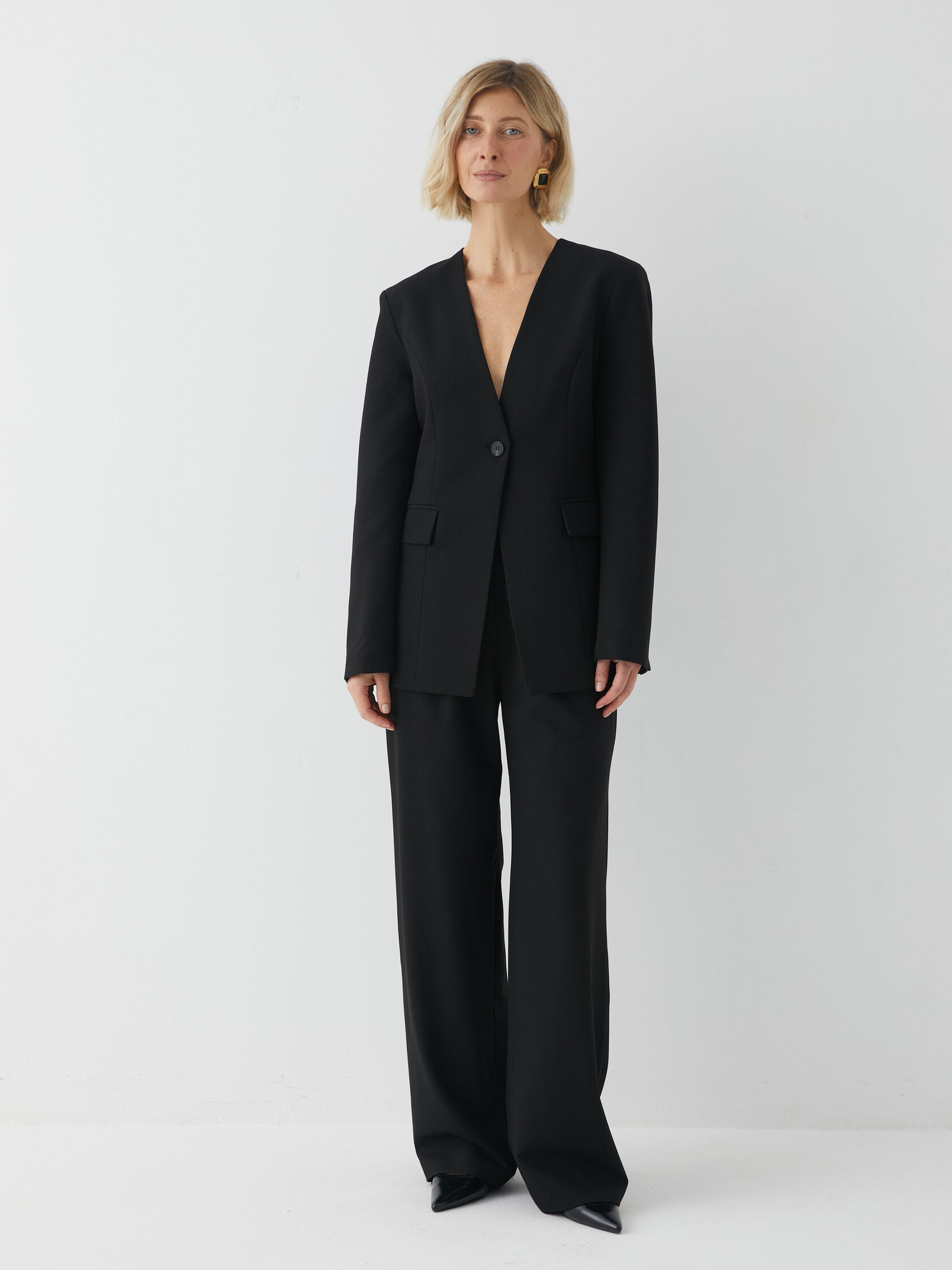 Элегантный и стильный элемент гардероба. Жакет подчёркивает фигуру благодаря приталенному крою, придавая образу изящность и женственность. Модель отличается лаконичным дизайном, что позволяет сочетать её с различными элементами одежды. Одно пуговица добавляет нотку минимализма и элегантности. Жакет станет отличным дополнением к деловому, повседневному или даже вечернему наряду, в зависимости от выбранных аксессуаров и низа.