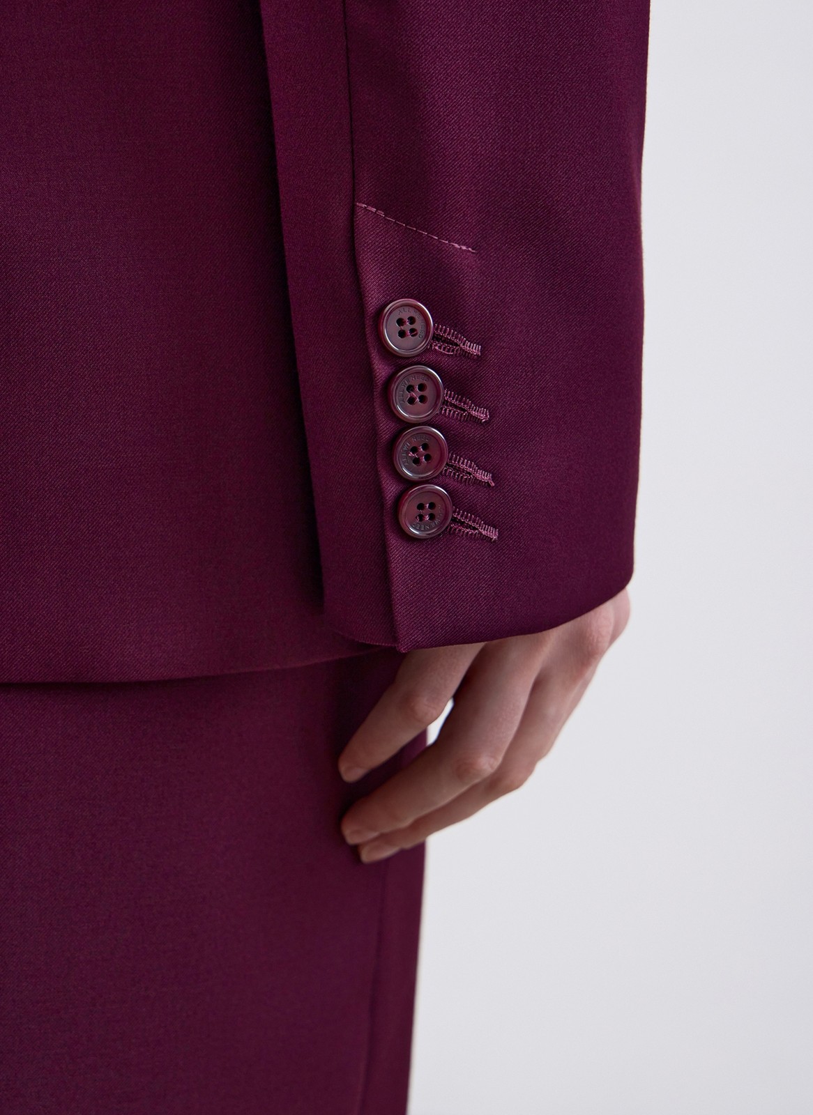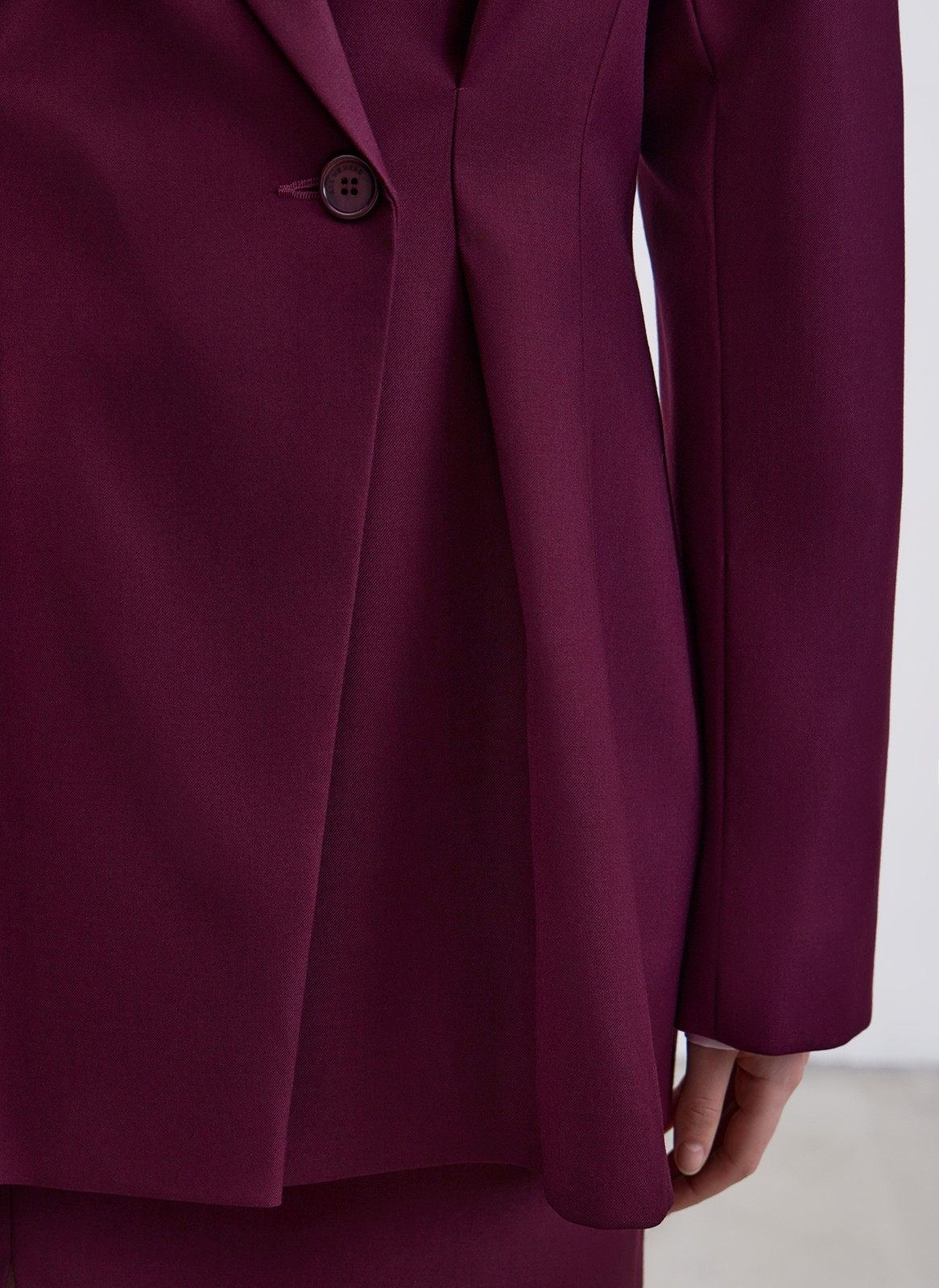 Для создания жакета мы использовали в меру плотную костюмную ткань, которая прекрасно держит форму и практически не мнётся.