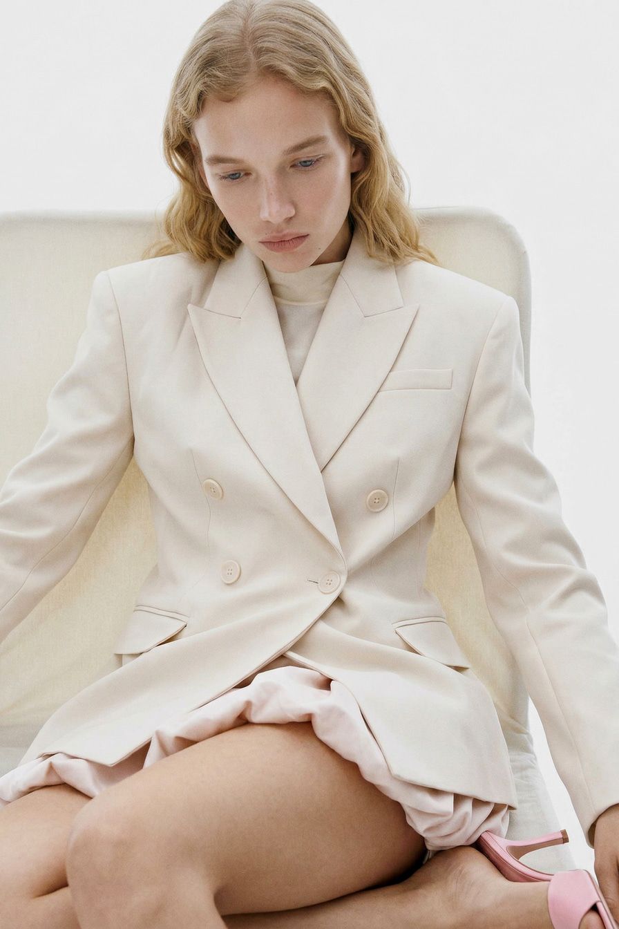 – Двубортный приталенный крой;