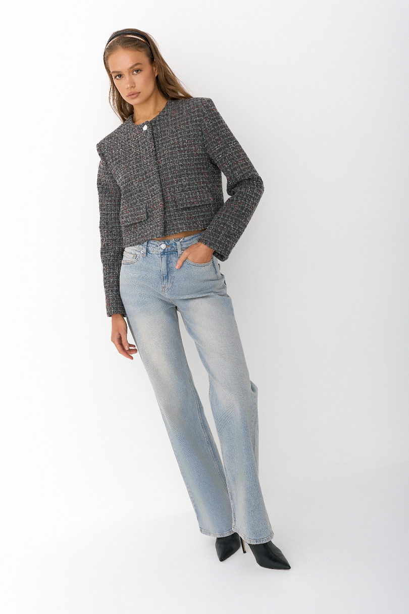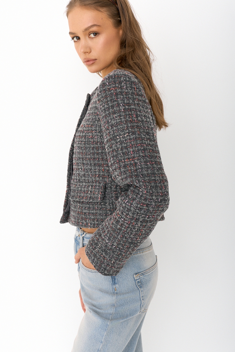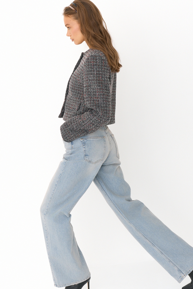 Жакет из цветного твида – это яркий акцент в вашем гардеробе. Классический крой дополнен оригинальной акцентной пуговицей, придающей изделию неповторимый шарм. Ткань приятна на ощупь и обеспечивает комфорт в носке. Сочетайте с юбками, брюками или джинсами, создавая разнообразные образы.