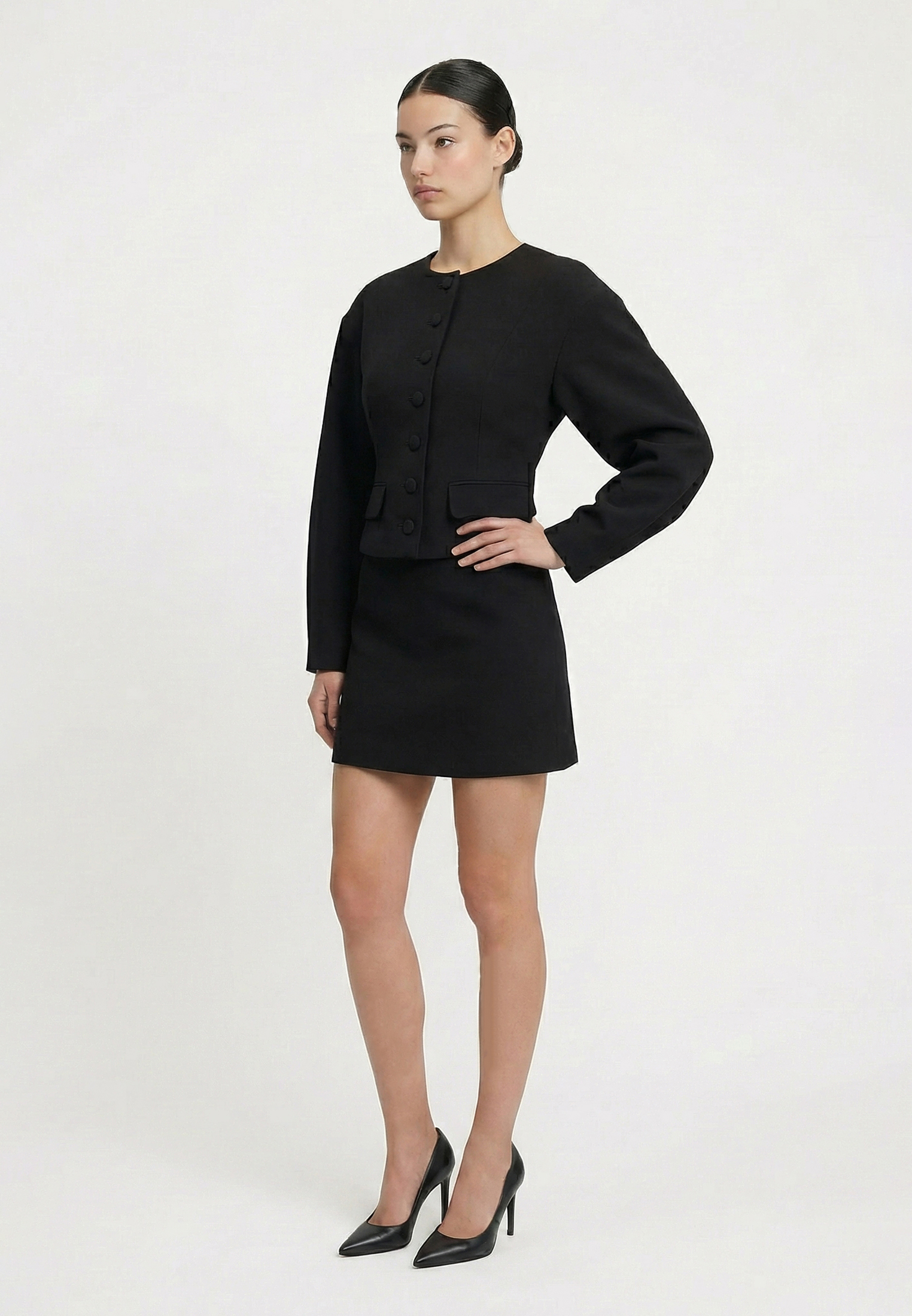 Жакет с округлым рукавом подчеркнёт вашу фигуру и добавит элегантности образу. Округлые рукава придают жакету особый шарм и делают его подходящим для различных ситуаций — от повседневных выходов до более формальных мероприятий.