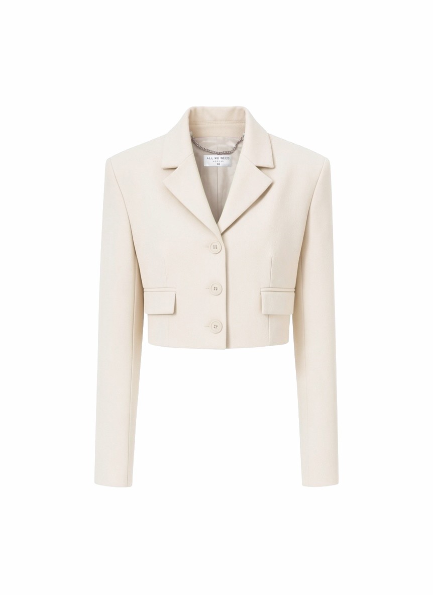 Укороченный однобортный крой подчёркивает талию и прекрасно смотрится с брюками с высокой посадкой. Линия плеч формирует чёткий и актуальный силуэт.
