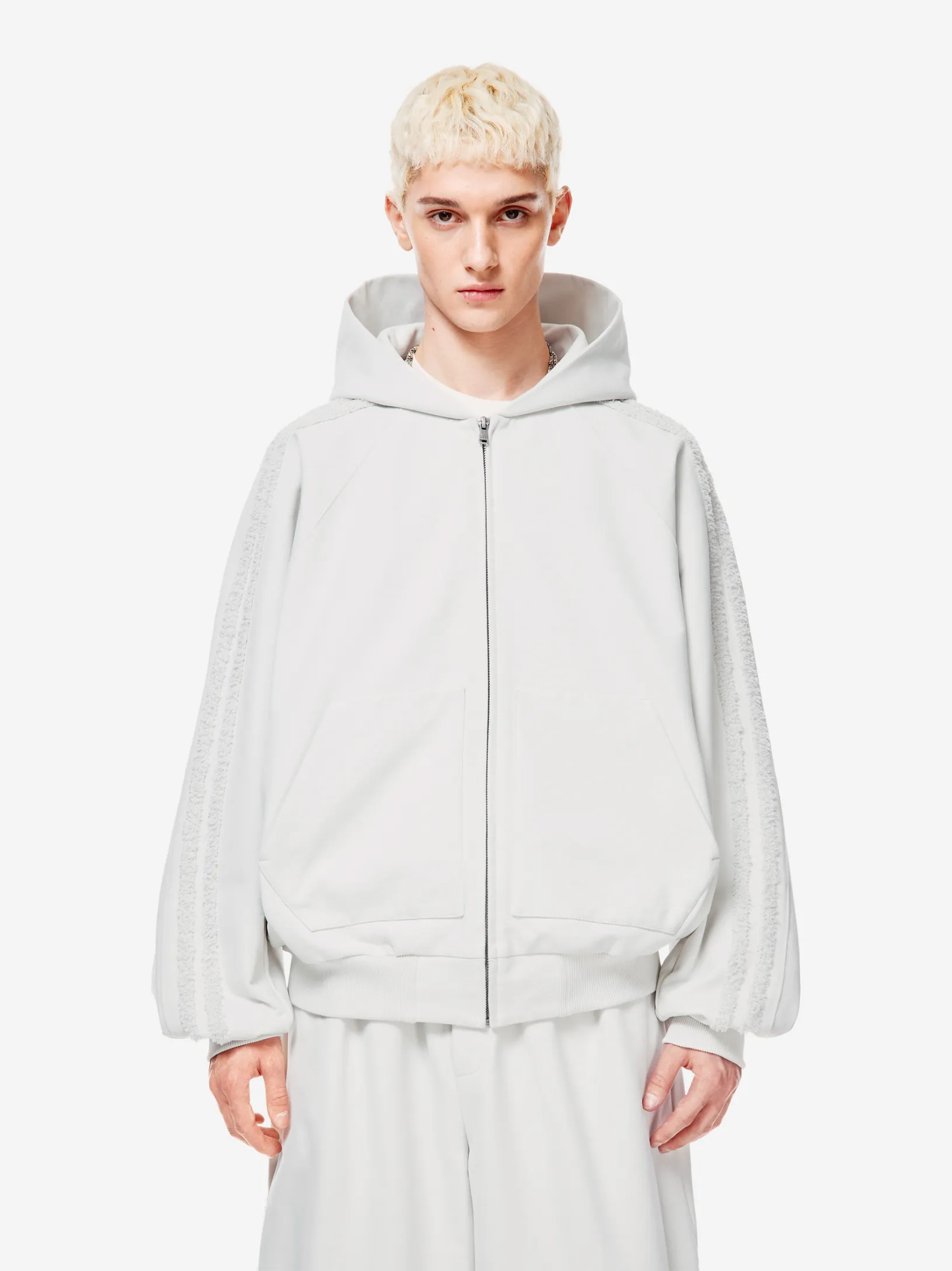 Молния придаёт изделию функциональность, а капюшон добавляет образу оригинальности и защищает от ветра.