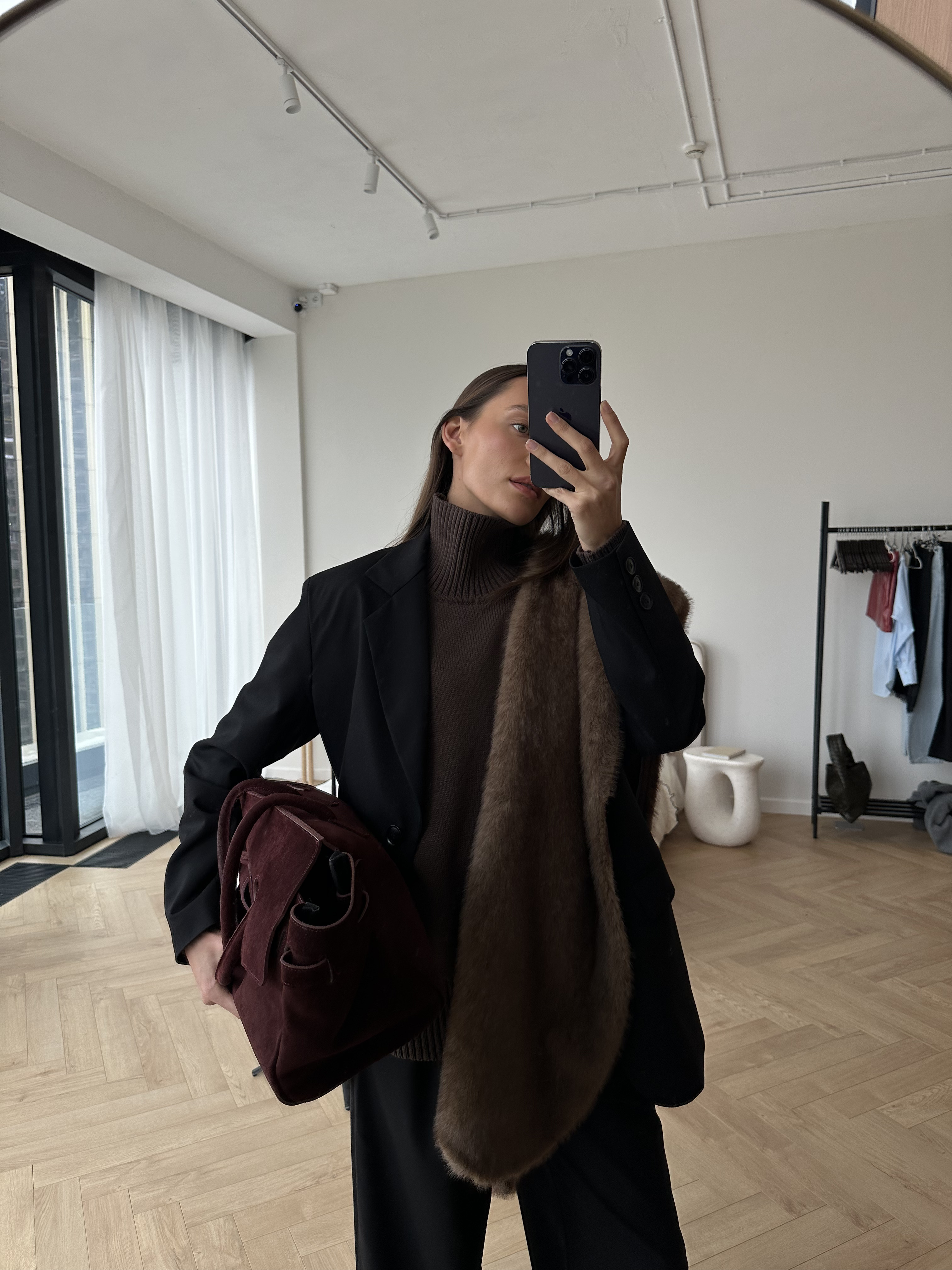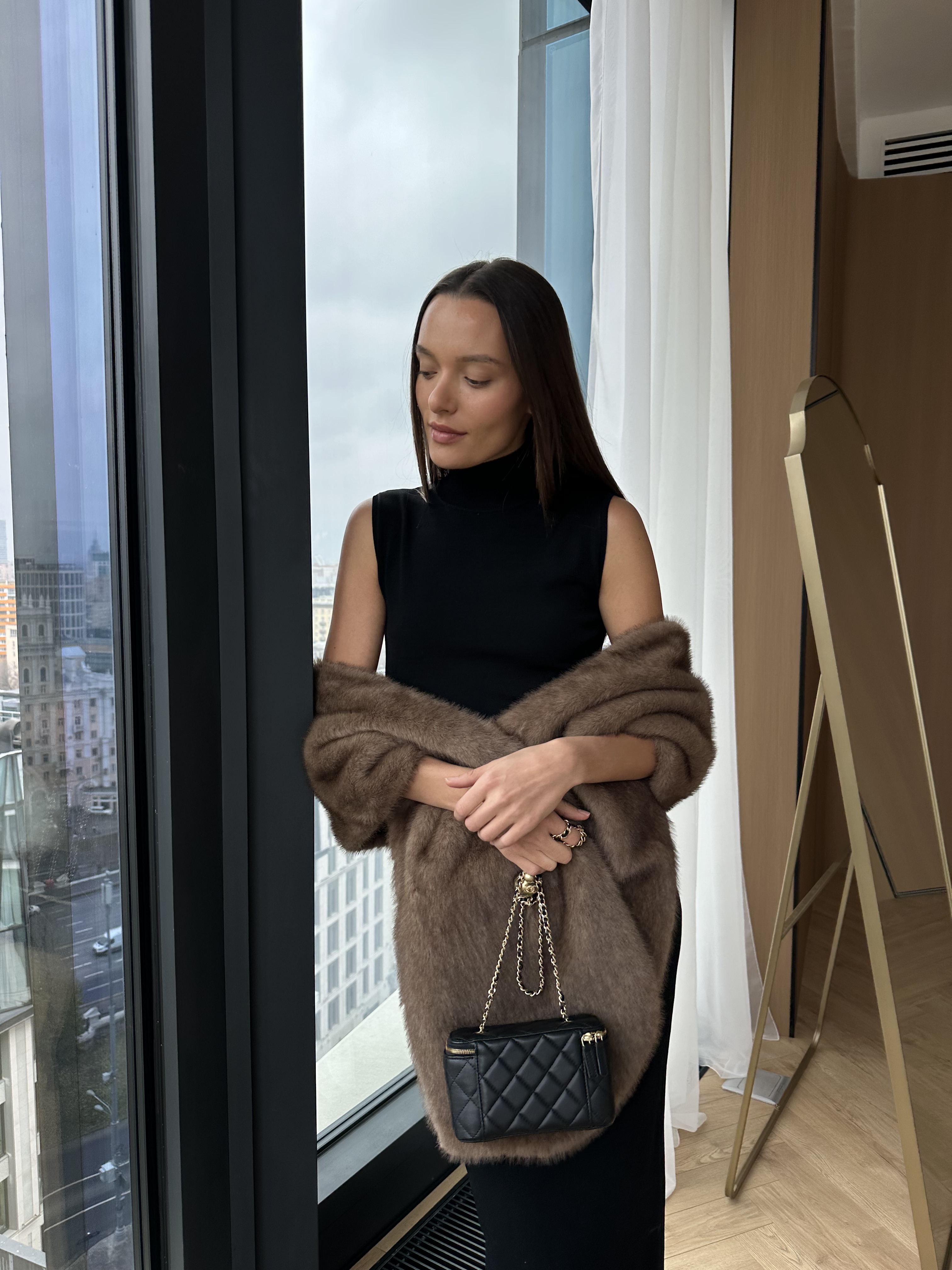 Шарф с имитацией соболя в светло-коричневом оттенке.