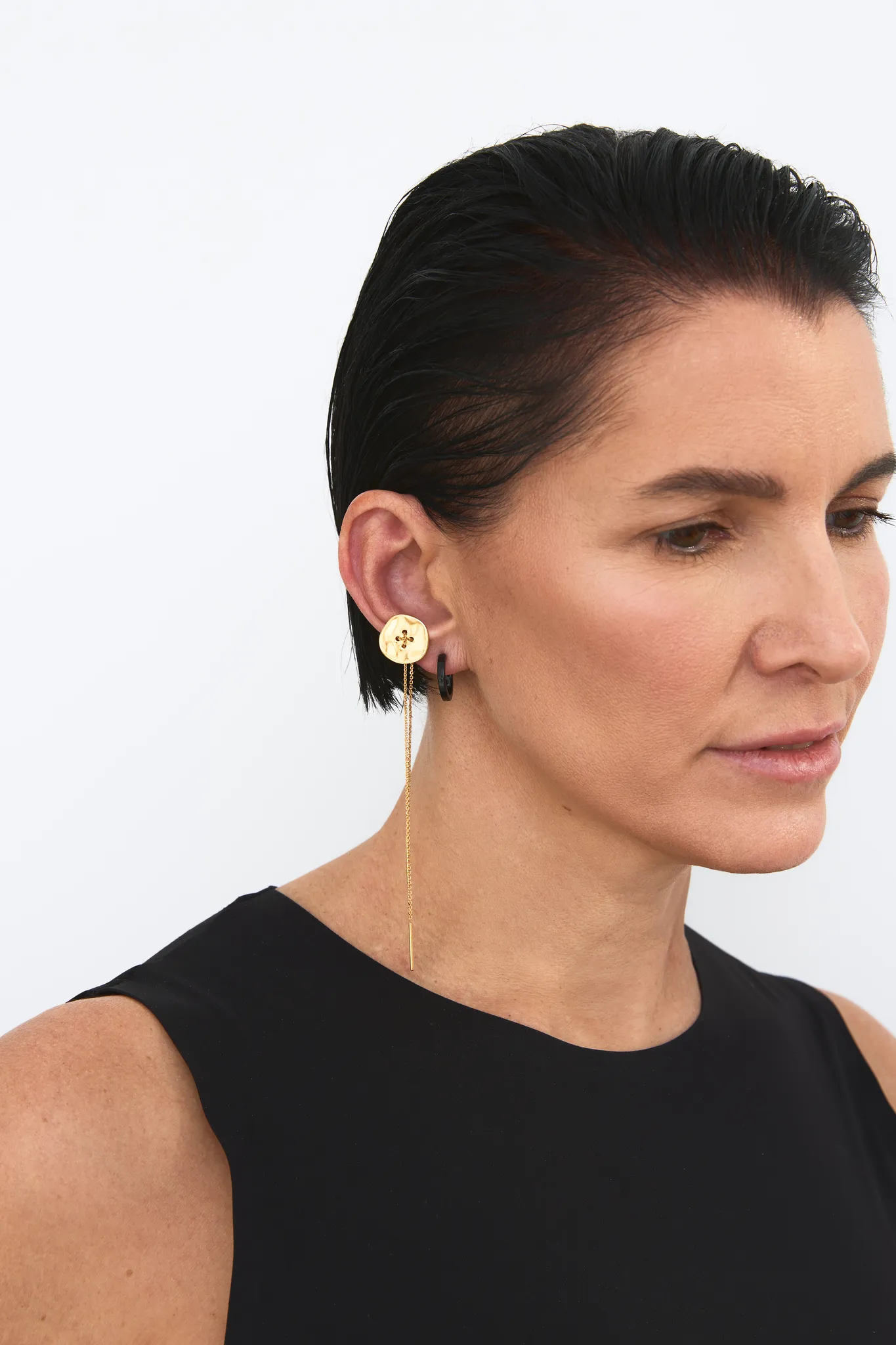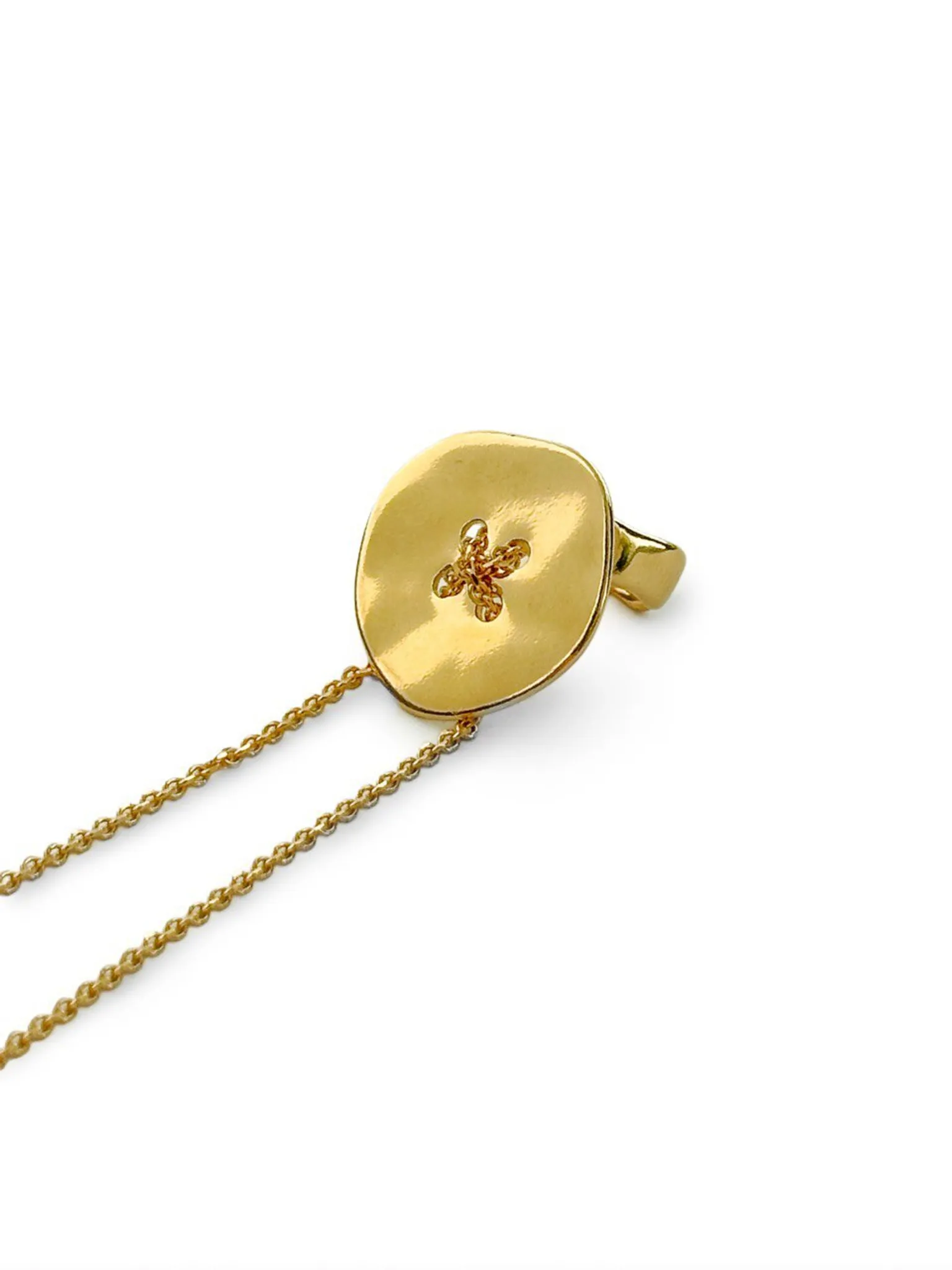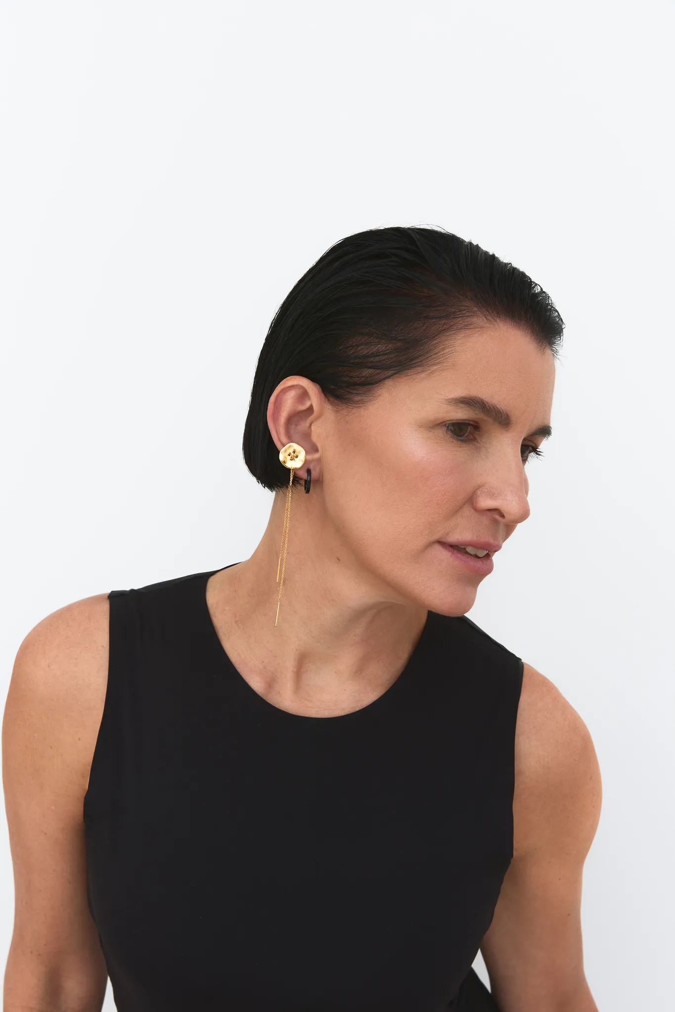 Пуговица: казалось бы, такая незаметная деталь, но именно на ней все держится. Дополнили ее теплым свечением позолоты и игривыми цепочками, чтобы создать украшение с лаконичной формой и глубоким содержанием.