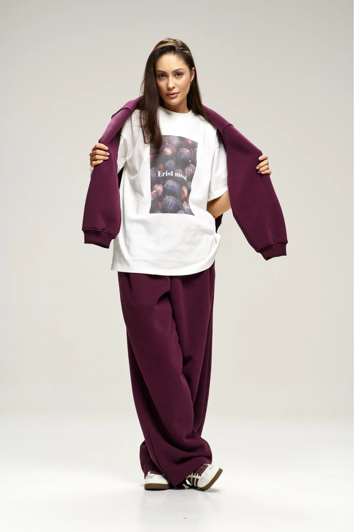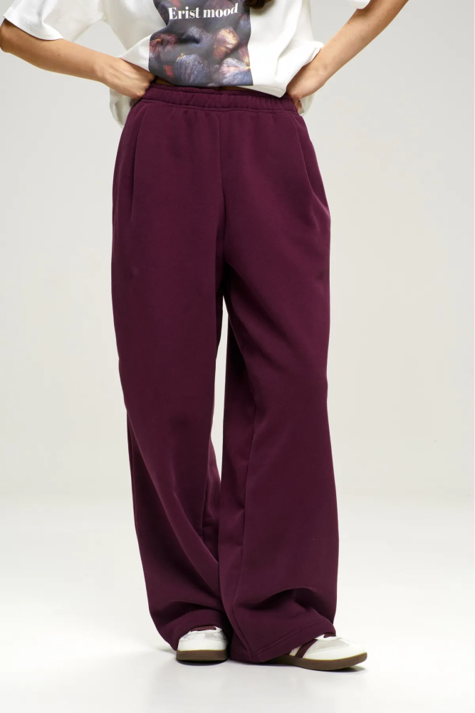 Брюки с начесом в стиле "гипер оверсайз". Широкие снизу штанины и защипы спереди создают дополнительный объём и широкую форму, а начёс внутри сохраняет тепло. Карманы добавляют удобства, сохраняя стиль. Носите в комплекте с худи из новой коллекции ERIST