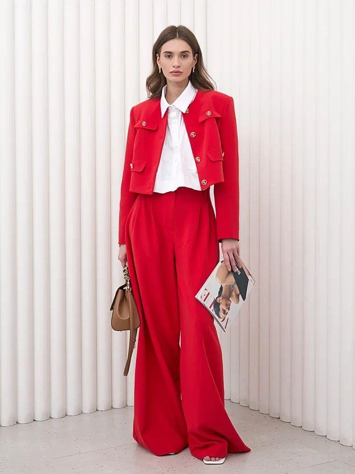 Укороченная рубашка, прямой силуэт, воротник на стойке, накладной карман на левой полочке.