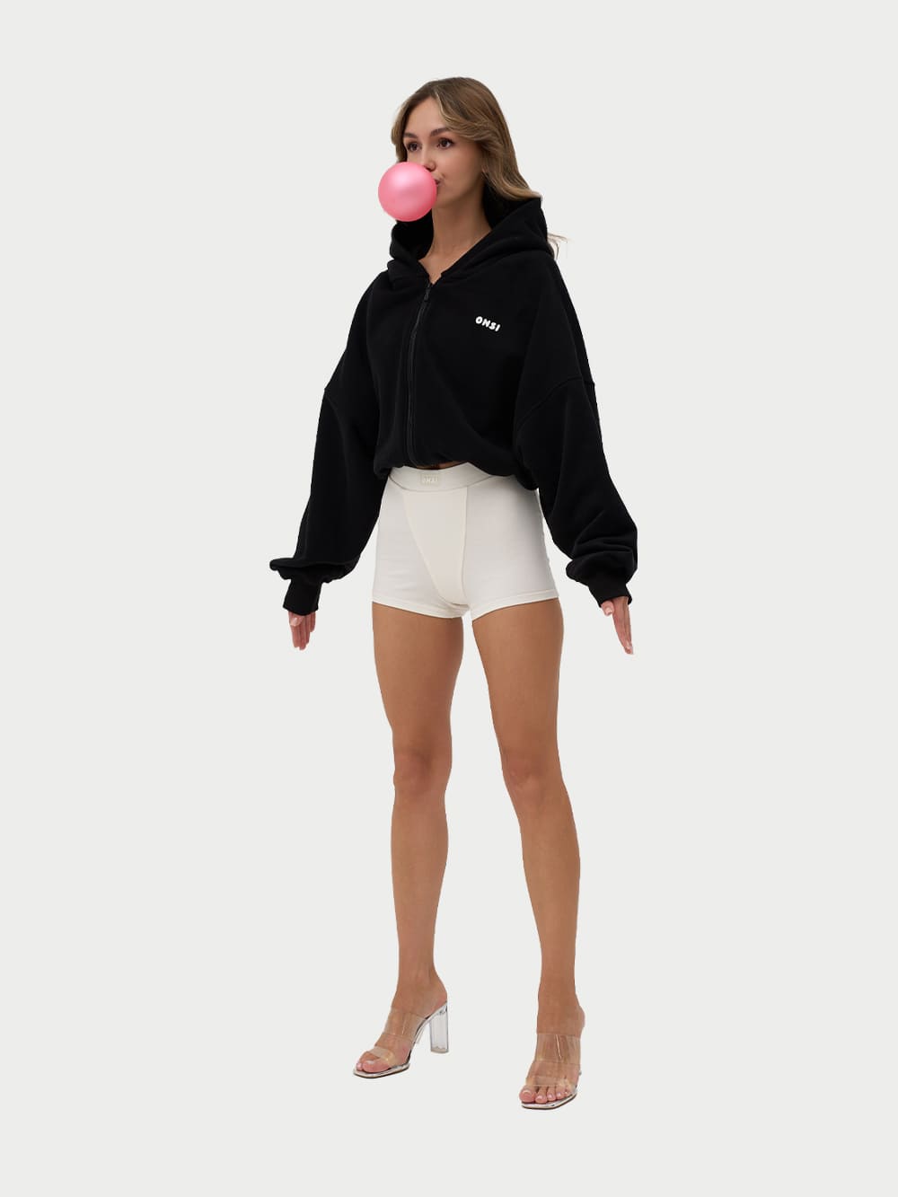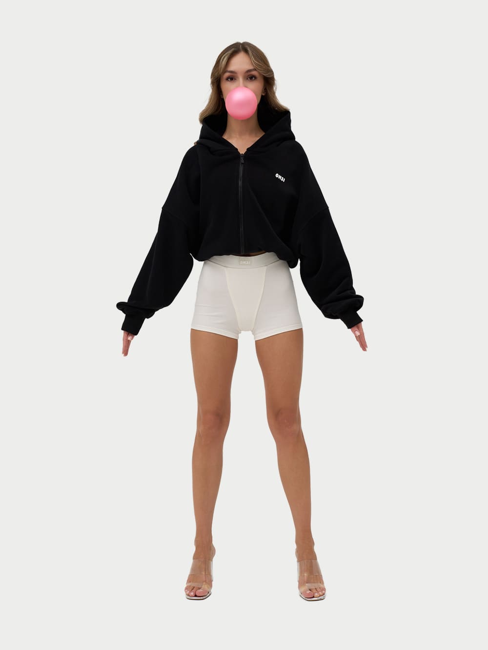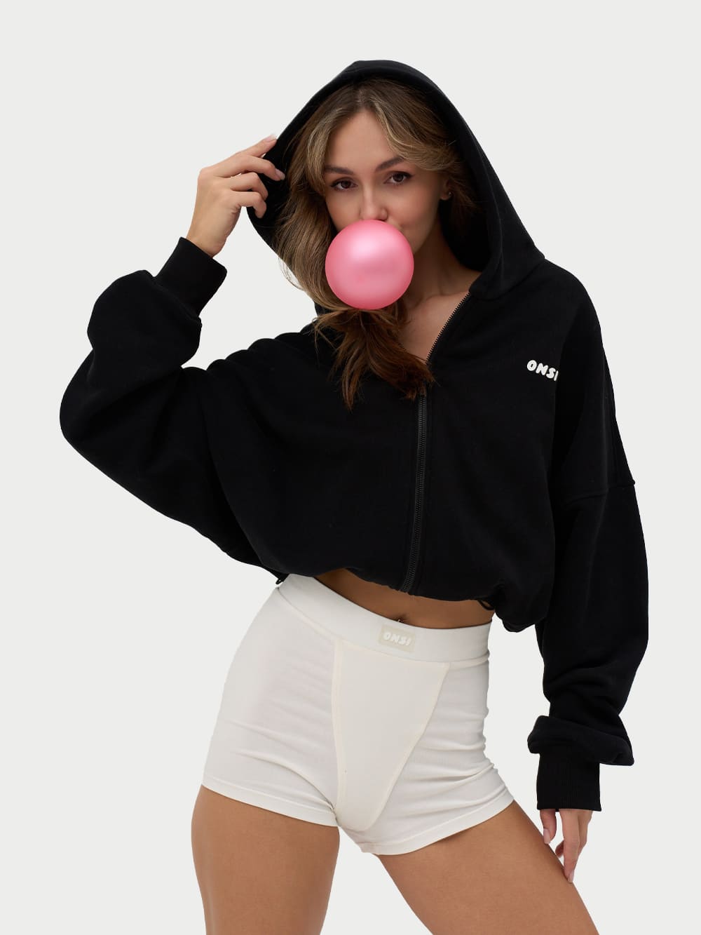 Оверсайз крой. Мягкое полотно с микроначесом. Регулируемая длина и ширина изделия за счет кулиски. Глубокий капюшон с продольным сечением.