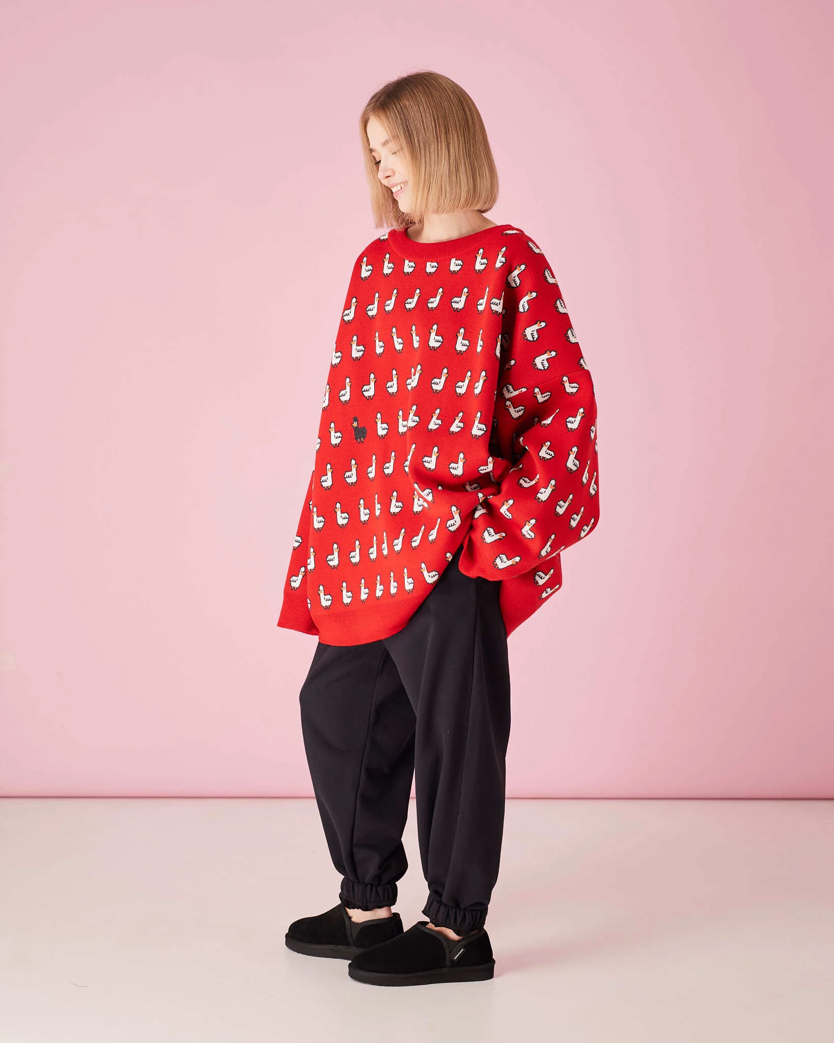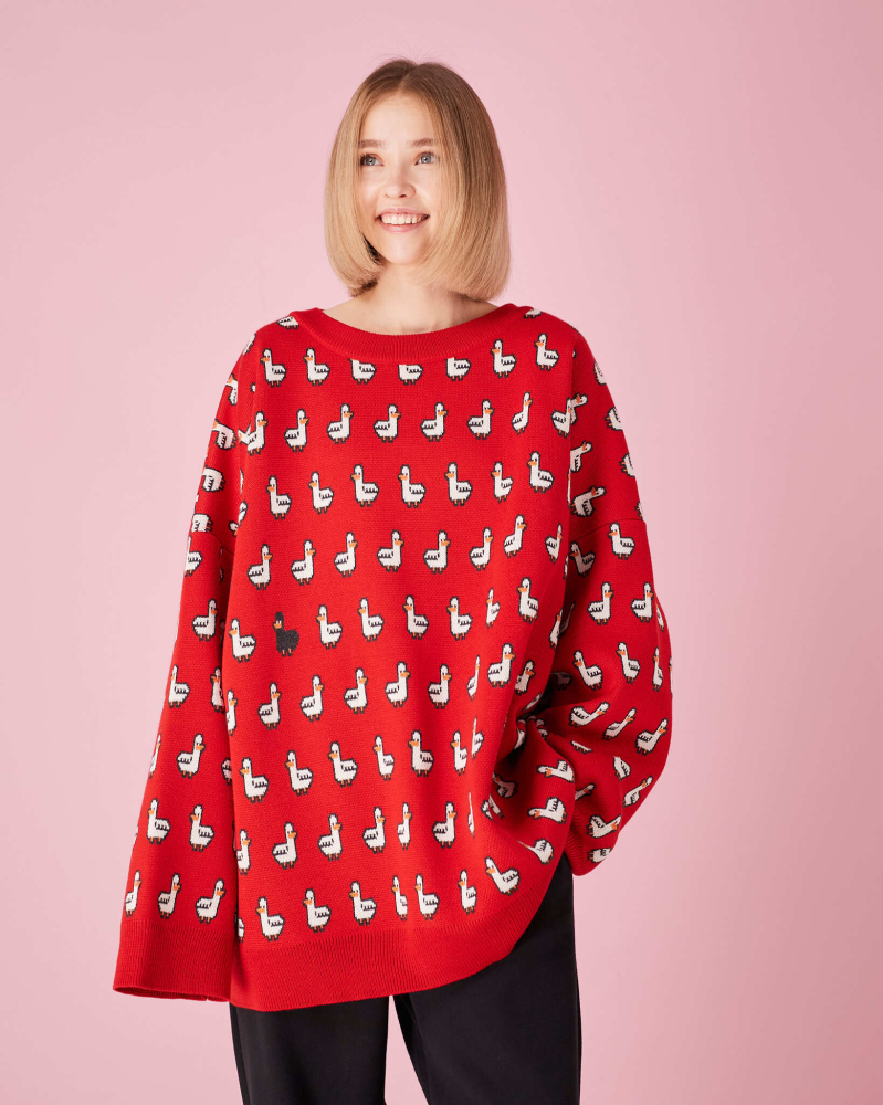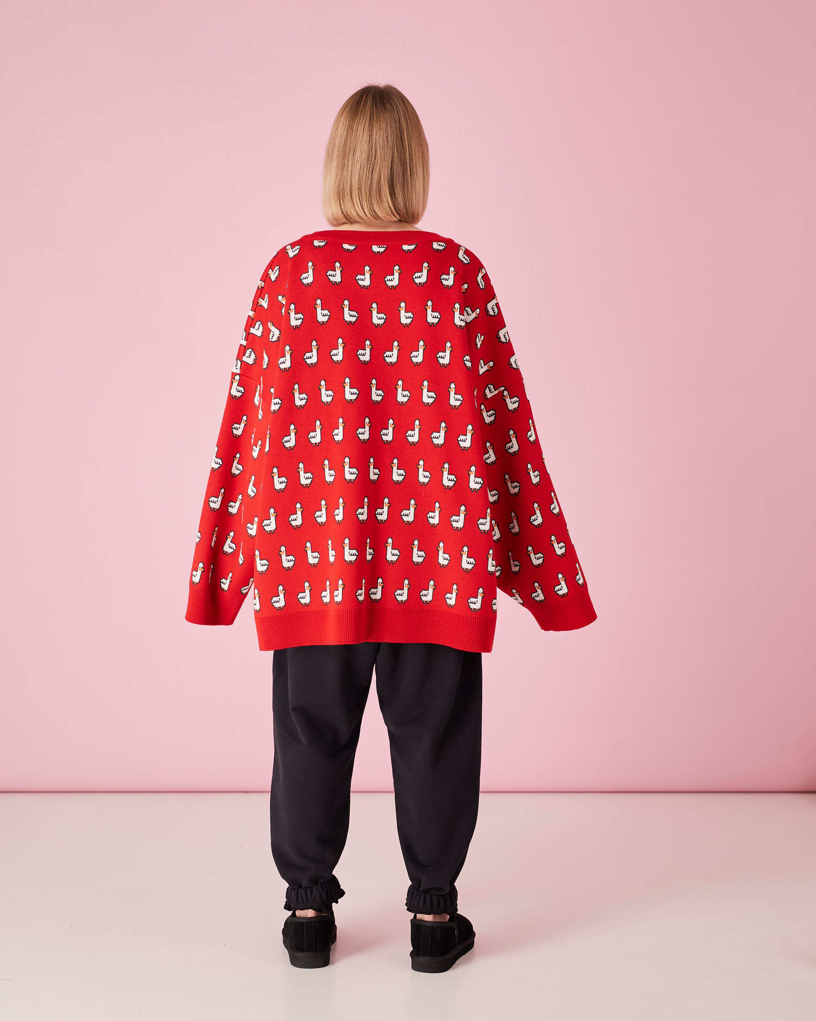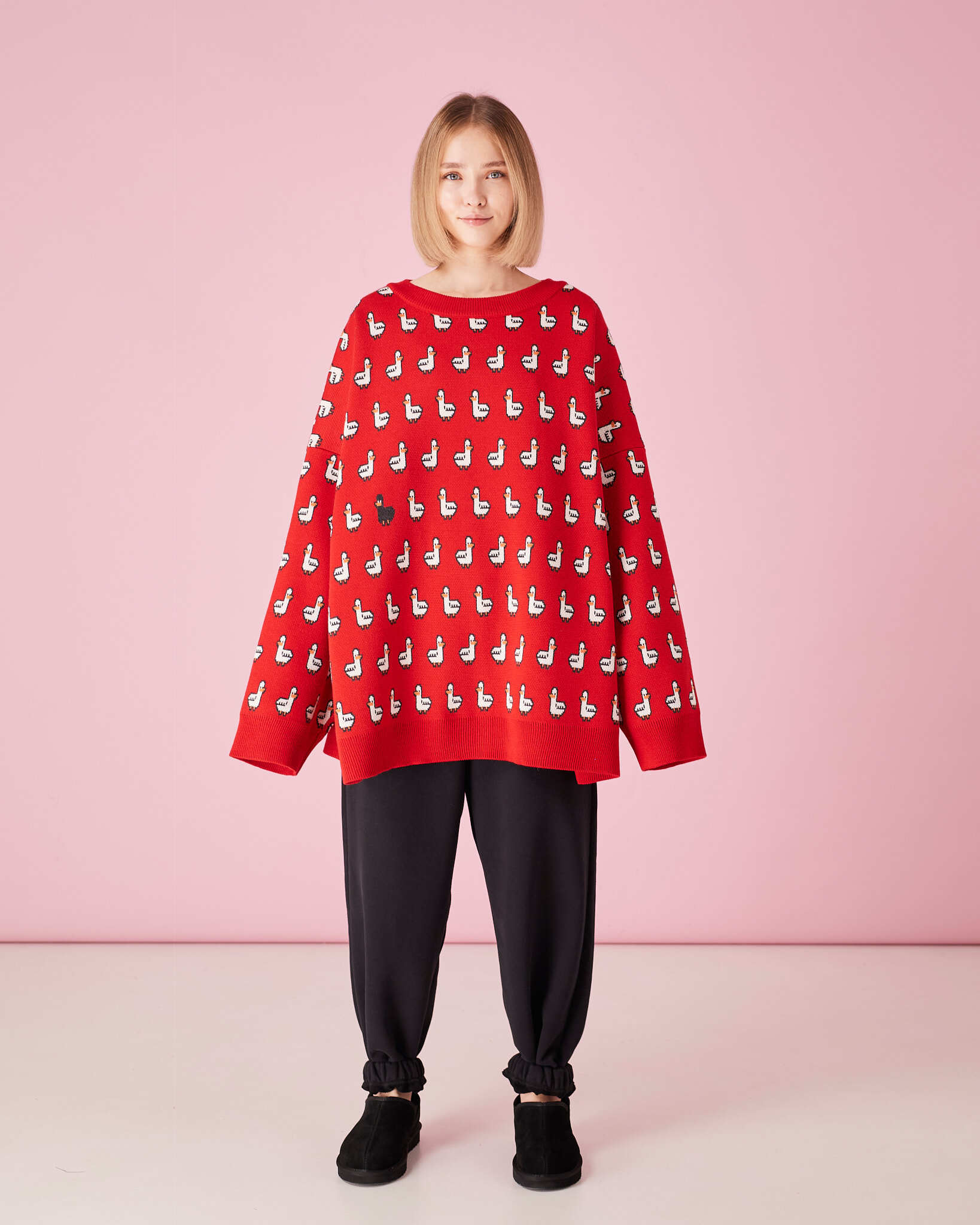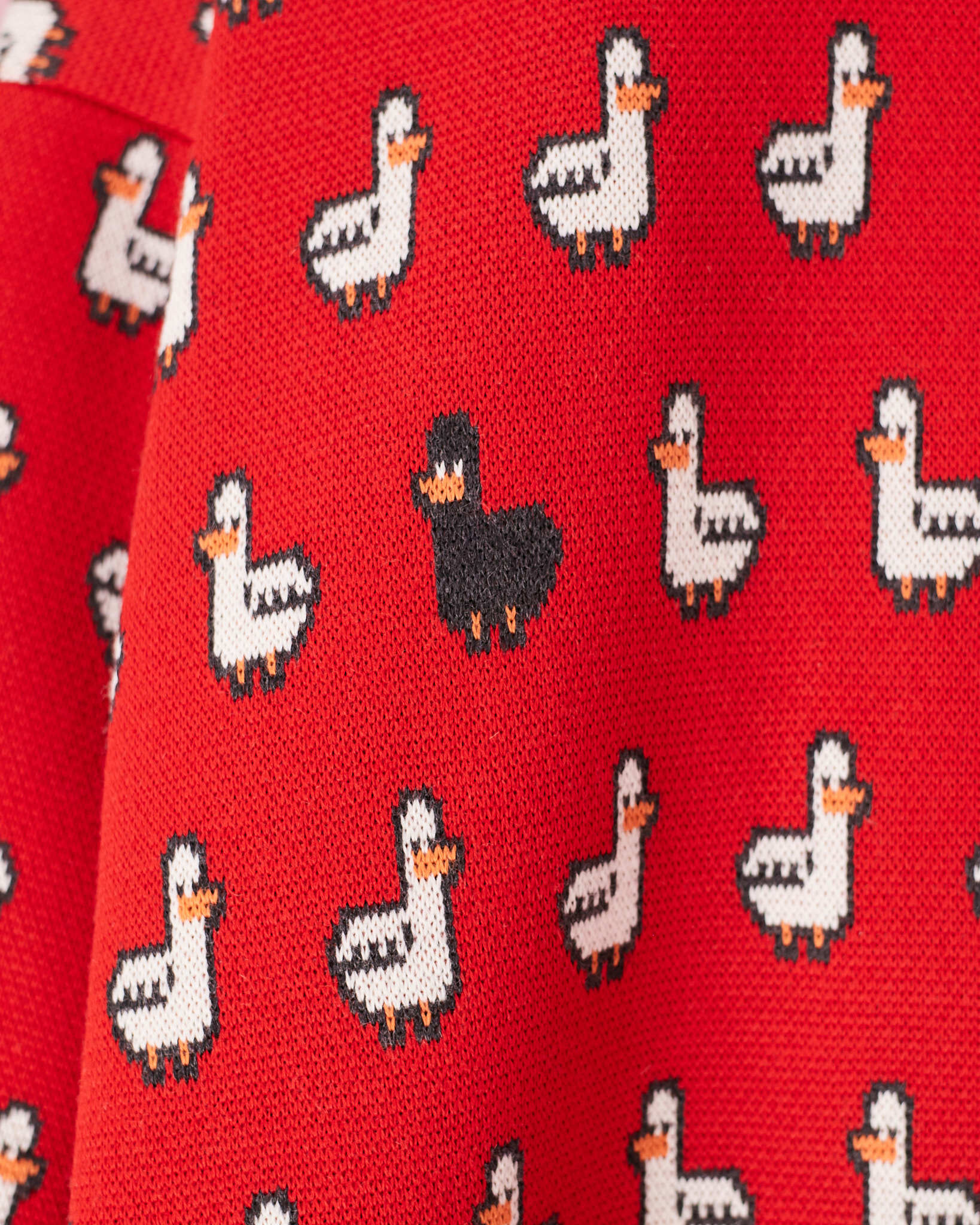Новый авторский рисунок в нашей коллекции. Паттерн маленьких гусиков по всему свитеру с одним особенным.