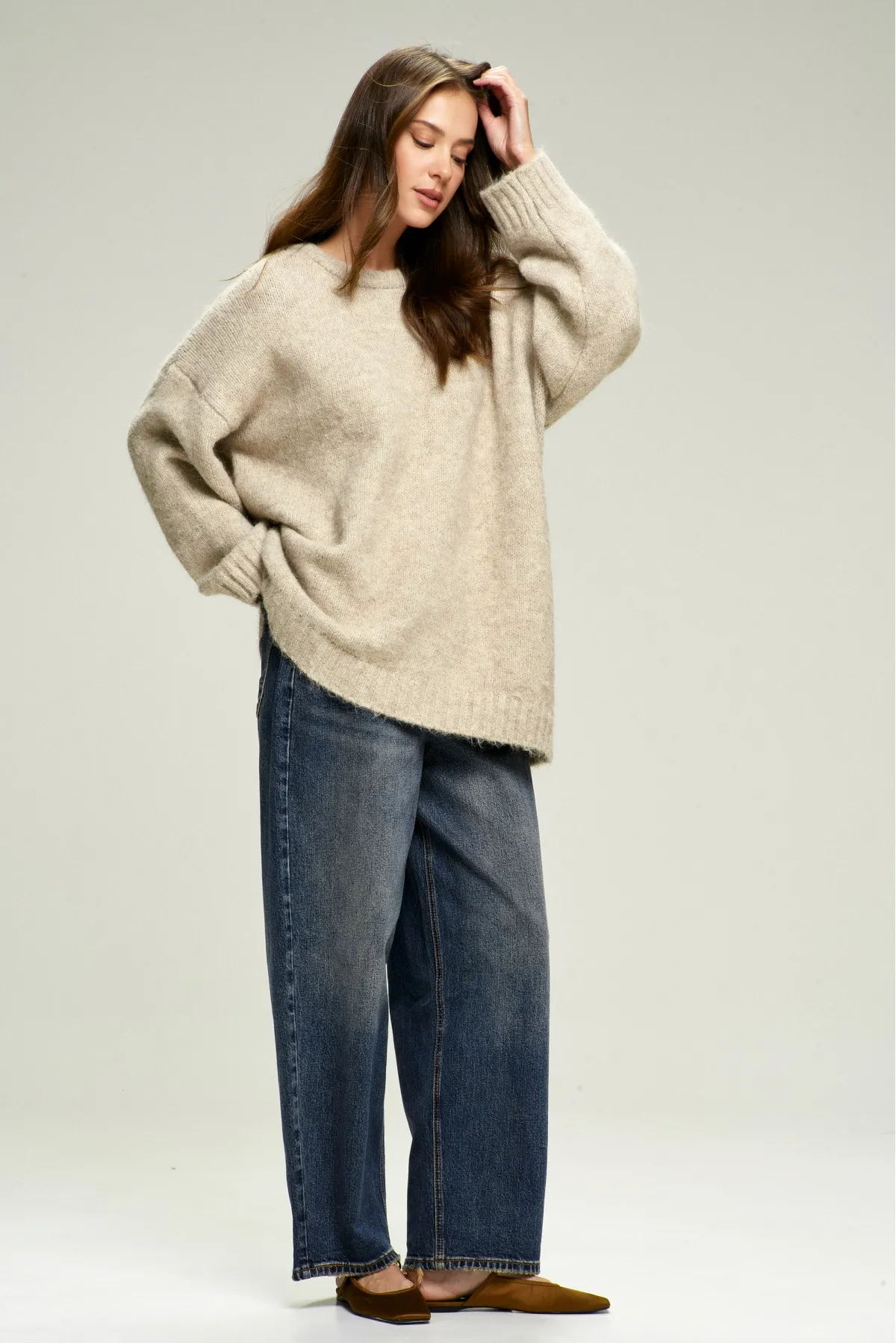 Просторный и тёплый джемпер напоминает дедушкин свитер. Мягкий, ворсистый, с уютной фактурой, которая так и манит завернуться в него. Идеальная длина для тех, кто любит комфорт и свободу движений.