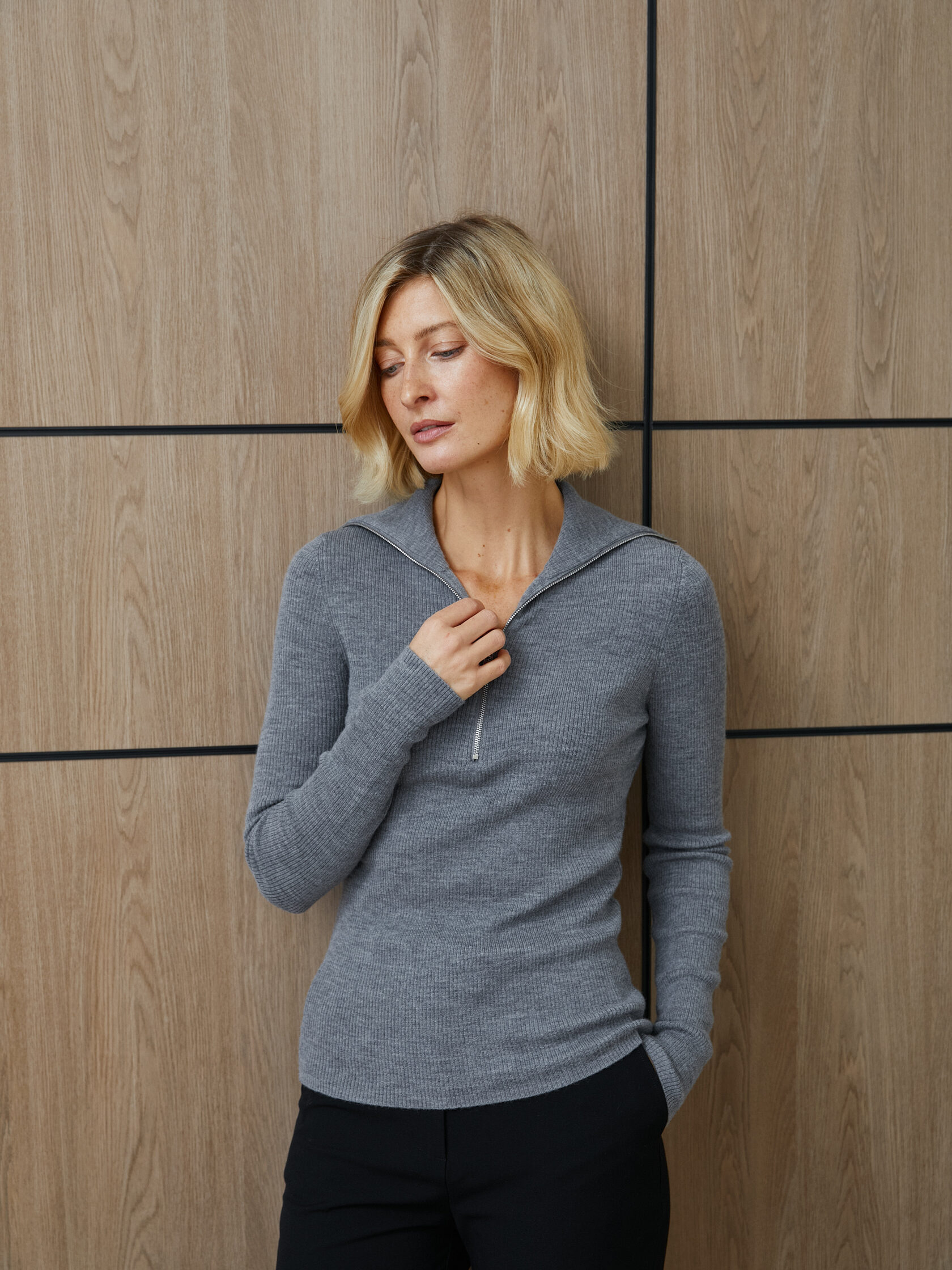 Лонгслив из шерсти — идеальный выбор для любого образа. Тонкий, но тёплый, с приталенным силуэтом и удобной молнией-полузастёжкой. Натуральный материал обеспечивает комфорт и сохраняет тепло. Отличный вариант для офиса, прогулок и повседневных встреч.