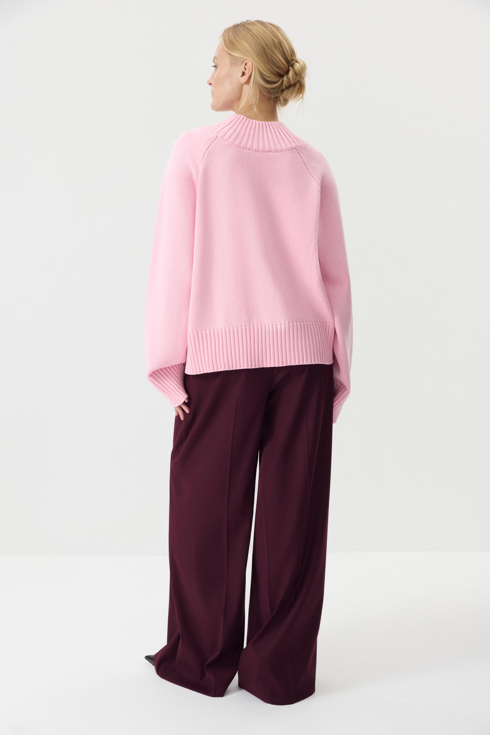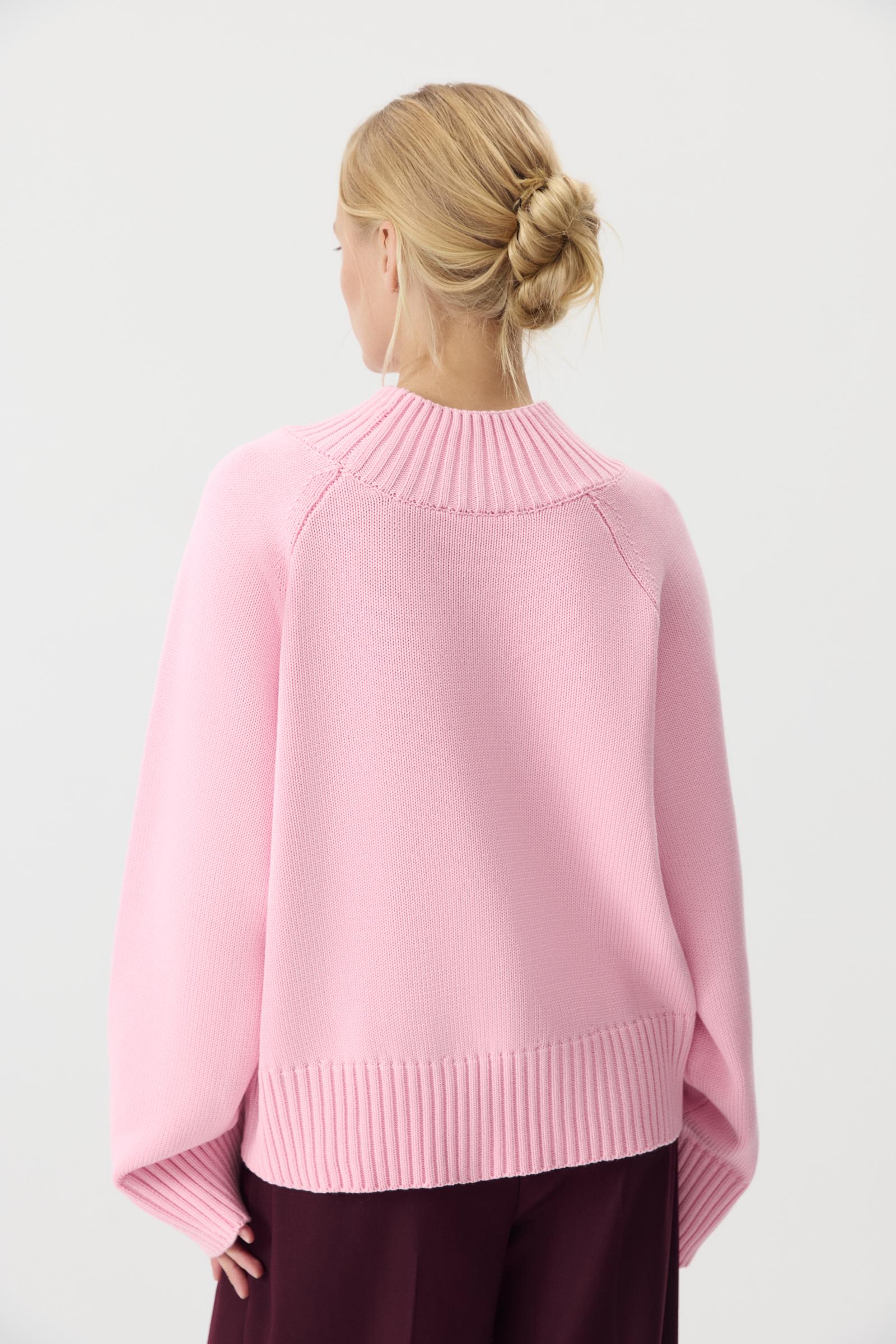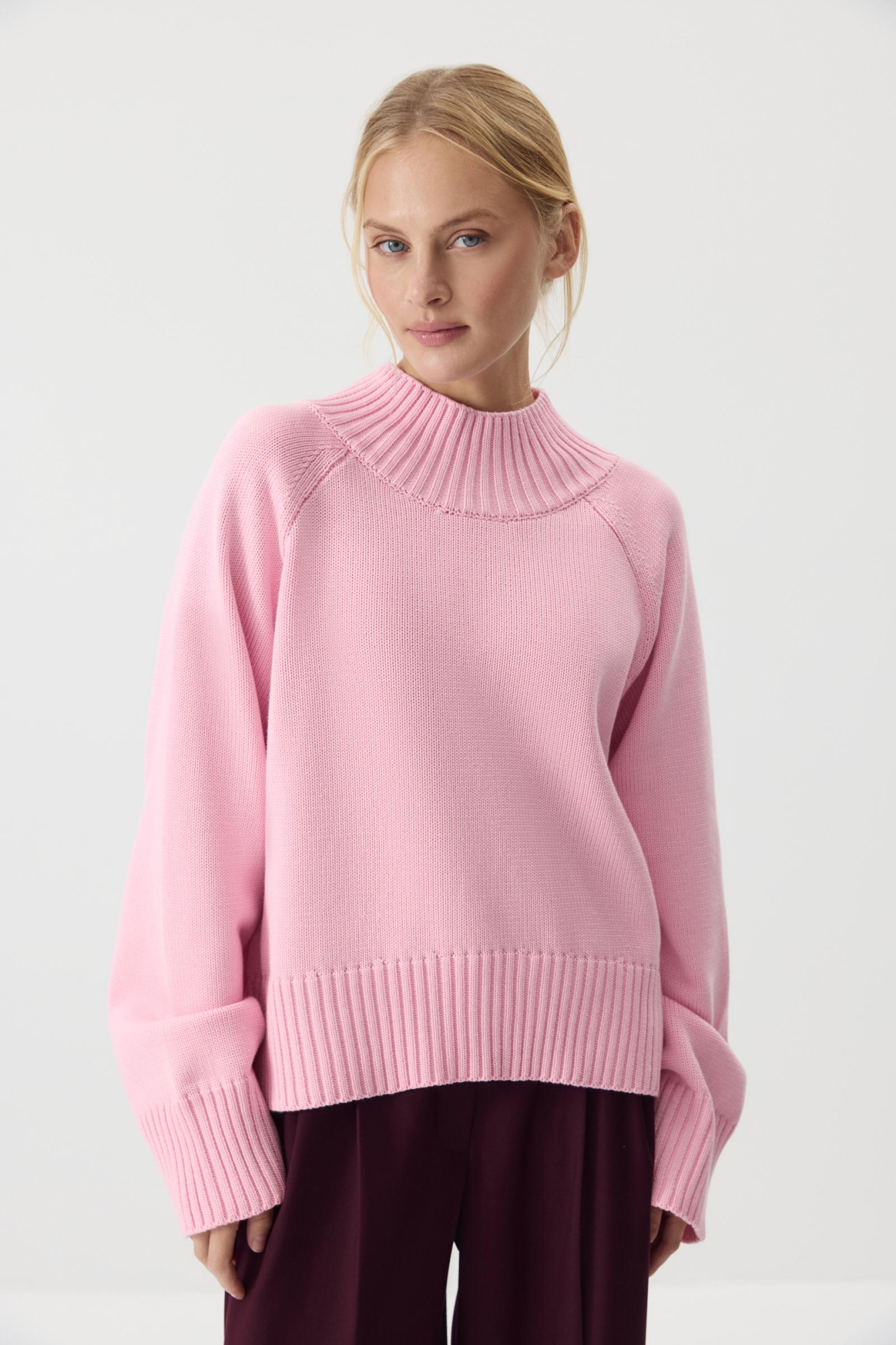 Свитер с широкой стойкой из хлопка- это уютная классика для повседневного гардероба. Мягкий натуральный материал дарит комфорт и приятные ощущения на коже, а широкая стойка защищает от холода. По низу изделия и рукавов широкая резинка.